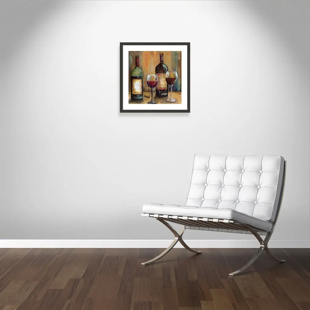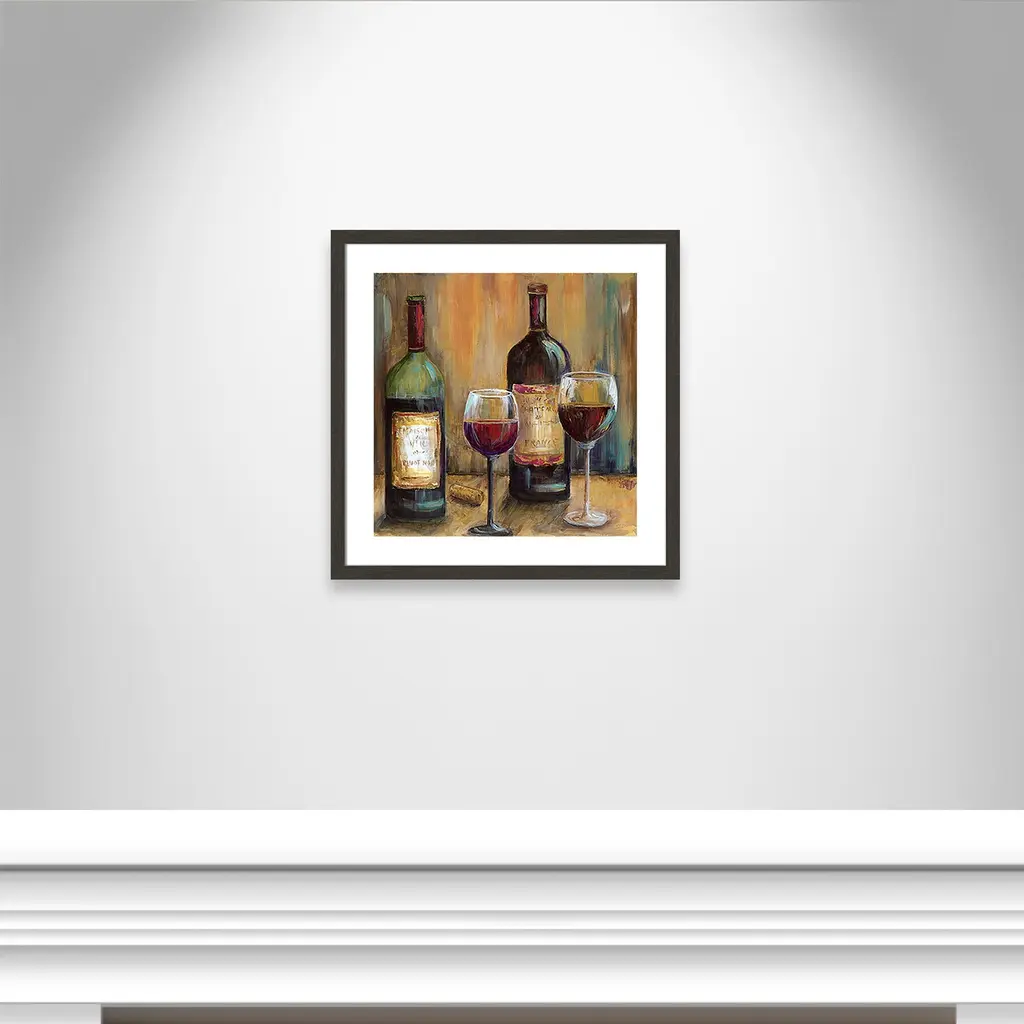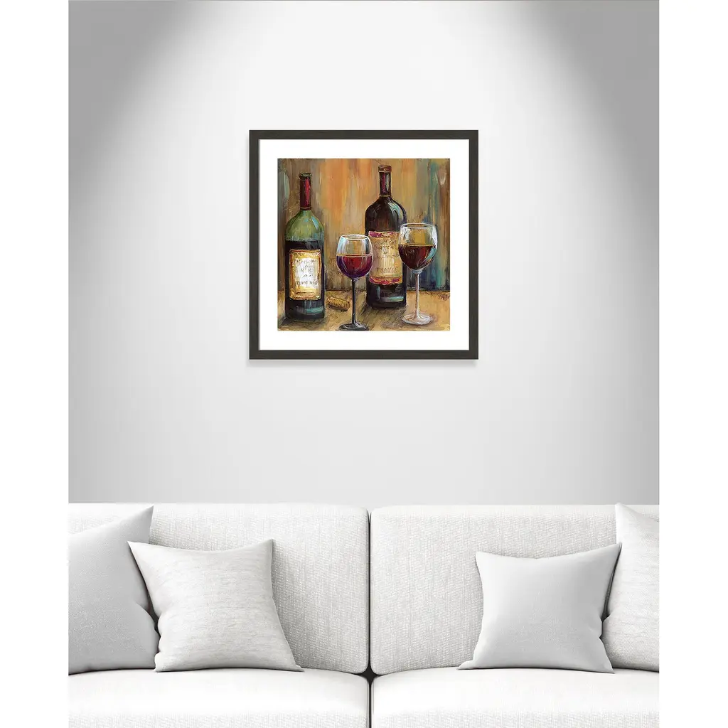 Add a rustic quality to your walls with Elegant Reds, a traditional, detailed image of fine red wines resting atop a bar. Finished in a modern frame made of PS materials, this is the perfect addition to your walls. Archival fine art giclée print on acid-free and lignin-free 100% cotton rag paper; image includes a bright white self-matting border Printed with gallery-quality inks using the finest giclée print technology for unsurpassed color gamut and clarity Lightweight and finished under shatter-resistant acrylic; hanging hardware attached for easy and secure installation Handcrafted in the USA and ships with a Certificate of Authenticity Lightweight and finished under shatter-resistant acrylic