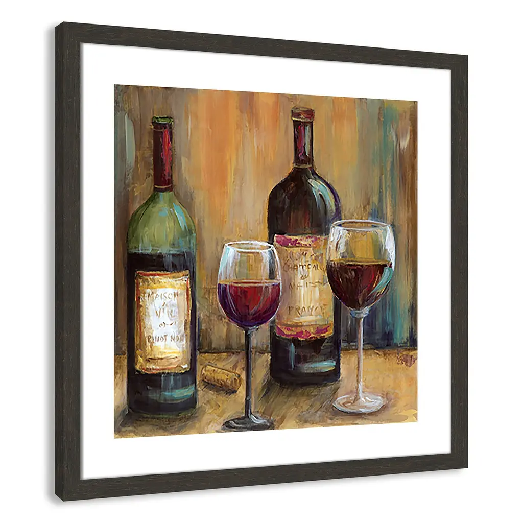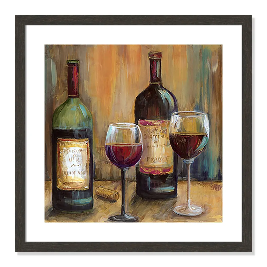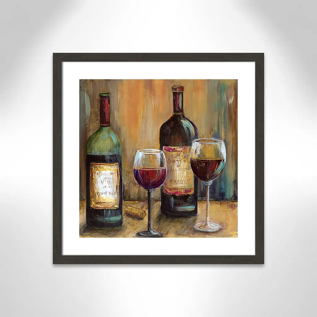 Add a rustic quality to your walls with Elegant Reds, a traditional, detailed image of fine red wines resting atop a bar. Finished in a modern frame made of PS materials, this is the perfect addition to your walls. Archival fine art giclée print on acid-free and lignin-free 100% cotton rag paper; image includes a bright white self-matting border Printed with gallery-quality inks using the finest giclée print technology for unsurpassed color gamut and clarity Lightweight and finished under shatter-resistant acrylic; hanging hardware attached for easy and secure installation Handcrafted in the USA and ships with a Certificate of Authenticity Lightweight and finished under shatter-resistant acrylic