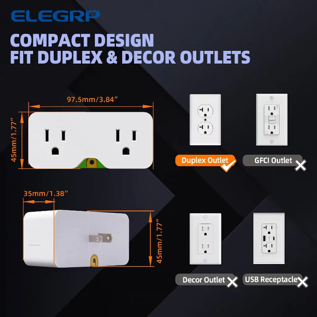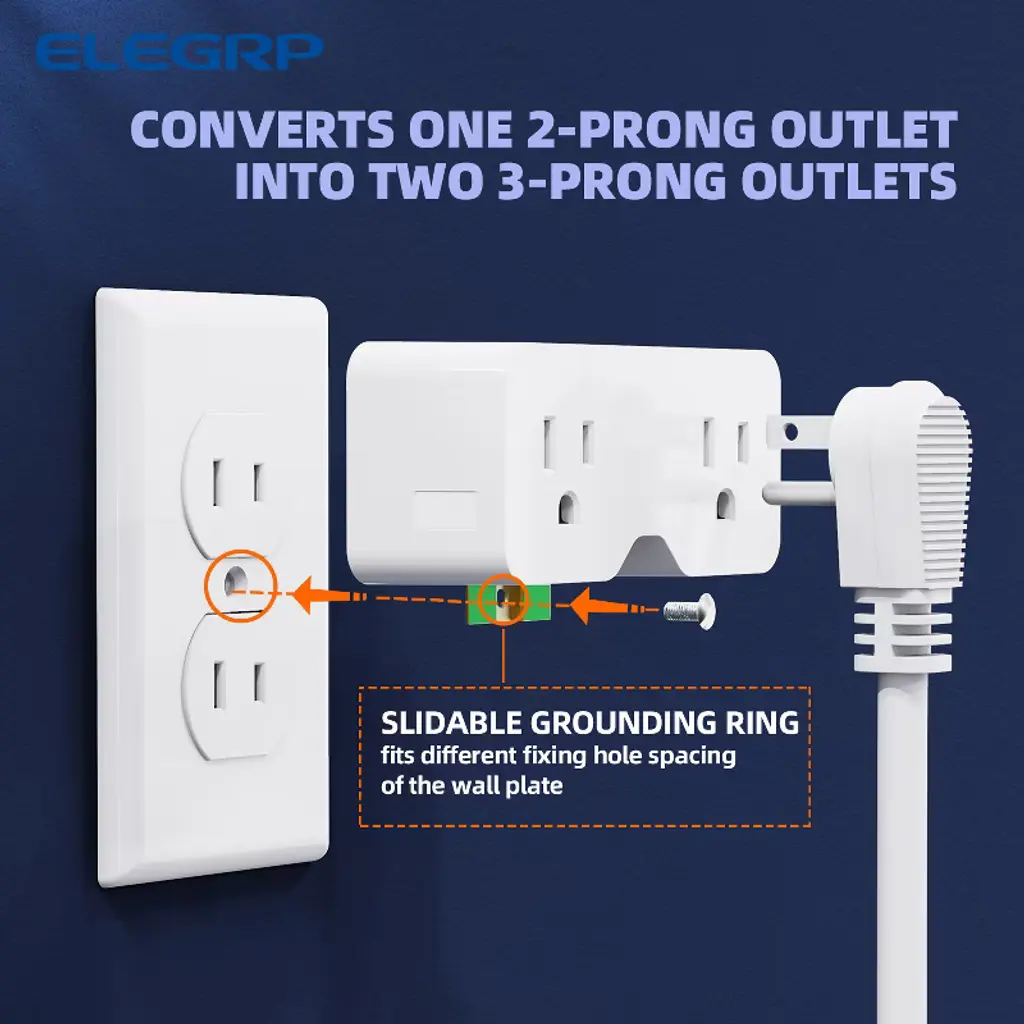 Elegrp 2 Prong To 3 Prong Grounding Adapter Plug, Outlet Extender Wall Tap, Outlet Extender With 2 Ac Outlets£¬etl Listed, White, 2 Pack