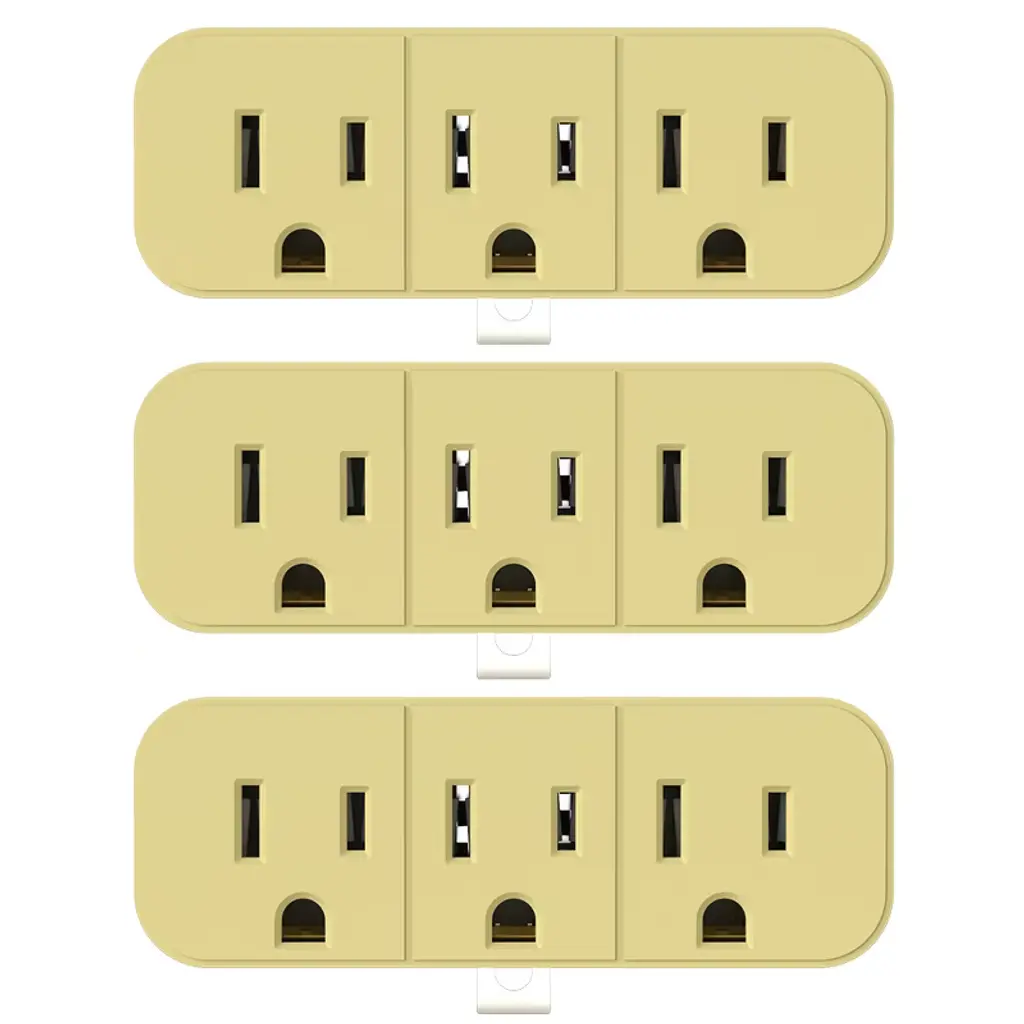 3 Prong Heavy Duty Power Extender to Triple Outlet in T Direction, Multi-Directional Grounded 15Amp 125V Tap Adapter Plug in T- Shape ETL Listed
