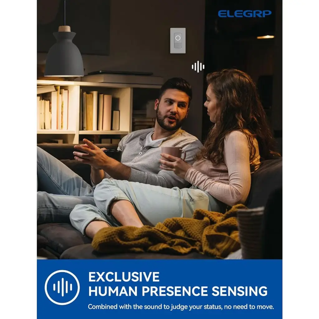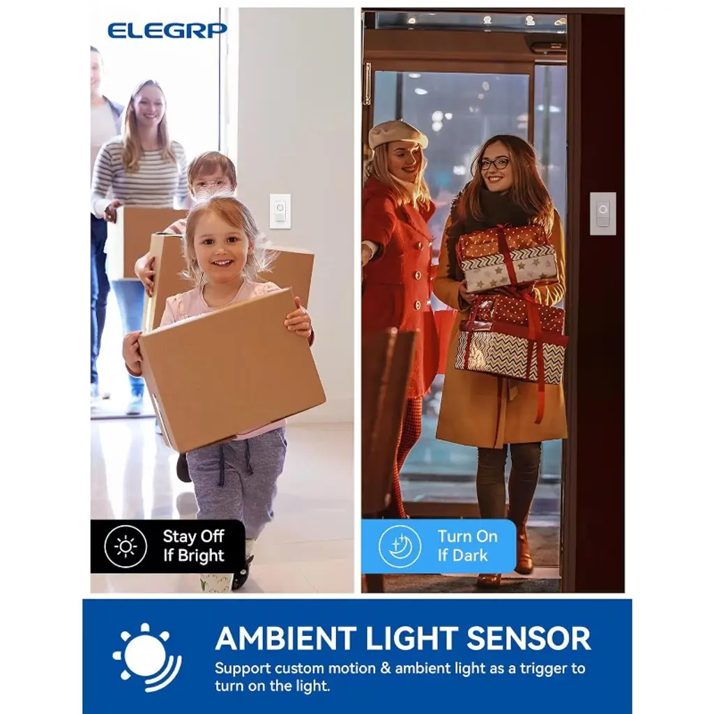 Elegrp Smart Sensor Light Switch Single Pole, 2.4ghz Wi-fi Dimmer Switch Compatible W/alexa & Google Assistant, White 1Pc