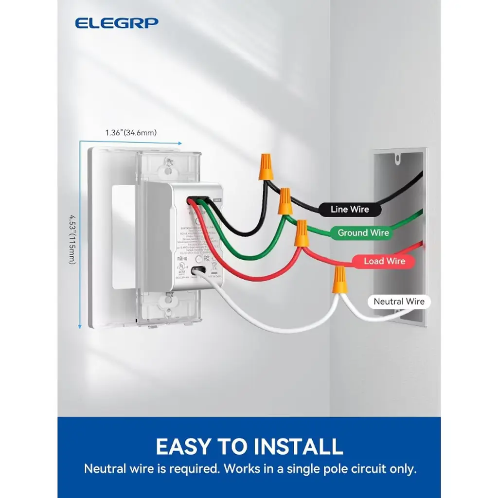 ELEGRP believes in providing friendly solutions by adopting a consumer-centric and efficient problem-solving approach. Going above and beyond in the future continuously in electrical safety use and smart home appliance, ELEGRP will constantly make explorations and innovations to meet the ever-changing demand of our consumers. ELEGRP Single Pole Smart Dimmer Light Switch,Intuitive up & down dimmer buttons and brightness level indicator let you fine tune lighting to match your mood or activity.Exceptionally quiet button without clicking sound when changing position.The skin-like matte surface and frameless design look best with today¡¯s decorator style. Fade On: gently eases you into the morning with lower levels of light that feel like a sunrise to wake you up. Fade Off: fade off the lights in your child's bedroom as they drift off to sleep or allow yourself time to exit a room without bumping into something in the dark.