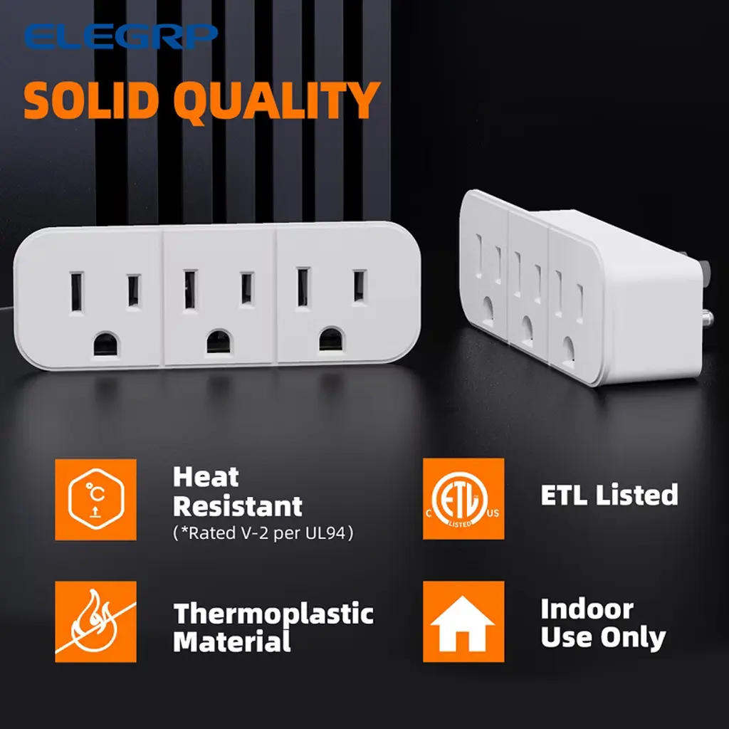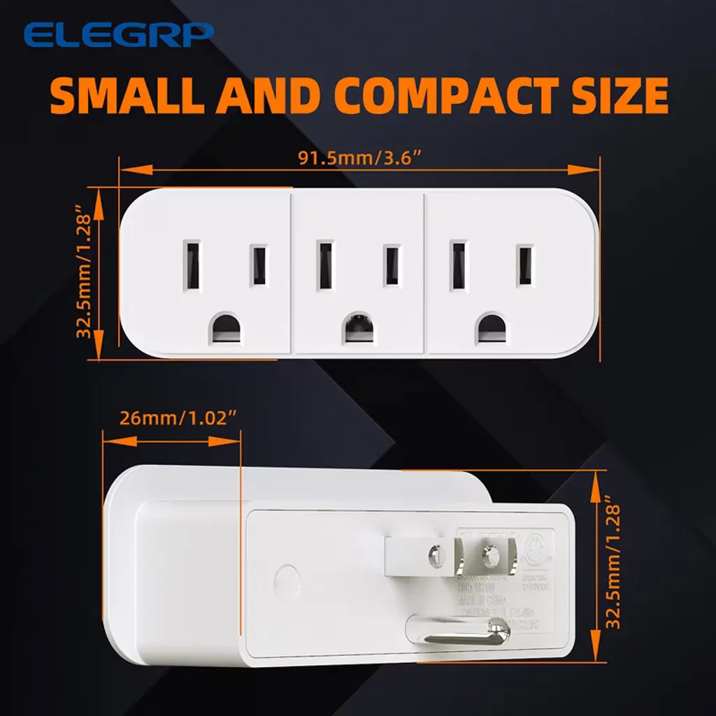 Elegrp Triple Outlet Extender, 3 Prong Grounded Wall Tab With 3 Electrical Outlets For Travel Home Hotel Office, Etl Listed, White £ ̈3 Pack)
