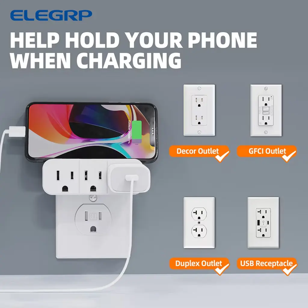 Triple Outlet Extender, 3 Prong Grounded Wall Tab, Multiple Outlet Extender Adapter Plug with 3 Electrical Outlets for Travel Home Hotel Office, ETL Listed
