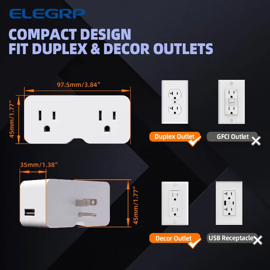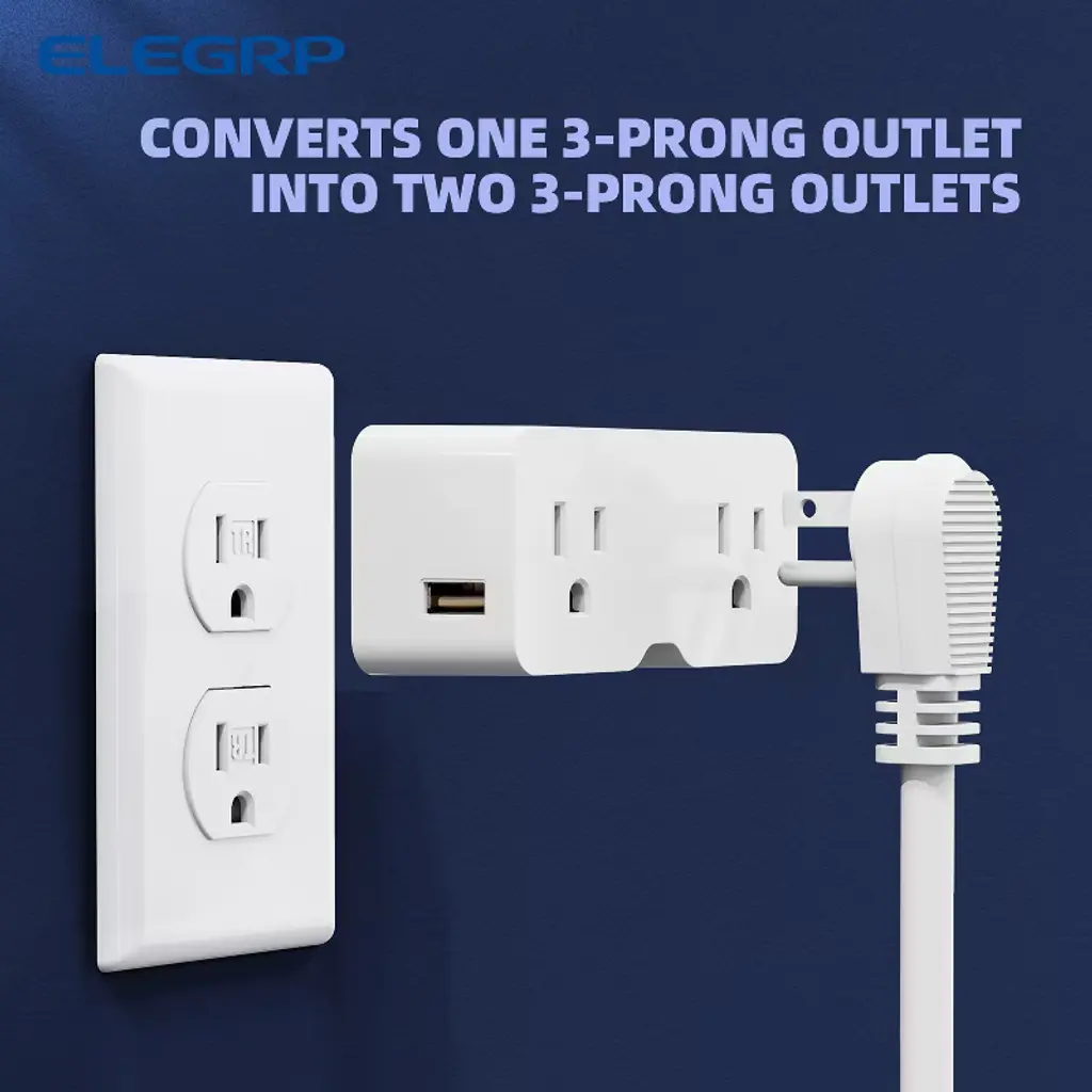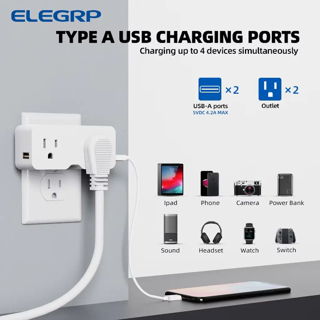 Elegrp Usb Wall Outlet Extender,with Two Usb A Ports 21w, Electrical Outlet Extender Wall Tap For Travel, Home And Office, 125v, White, 1 Pack