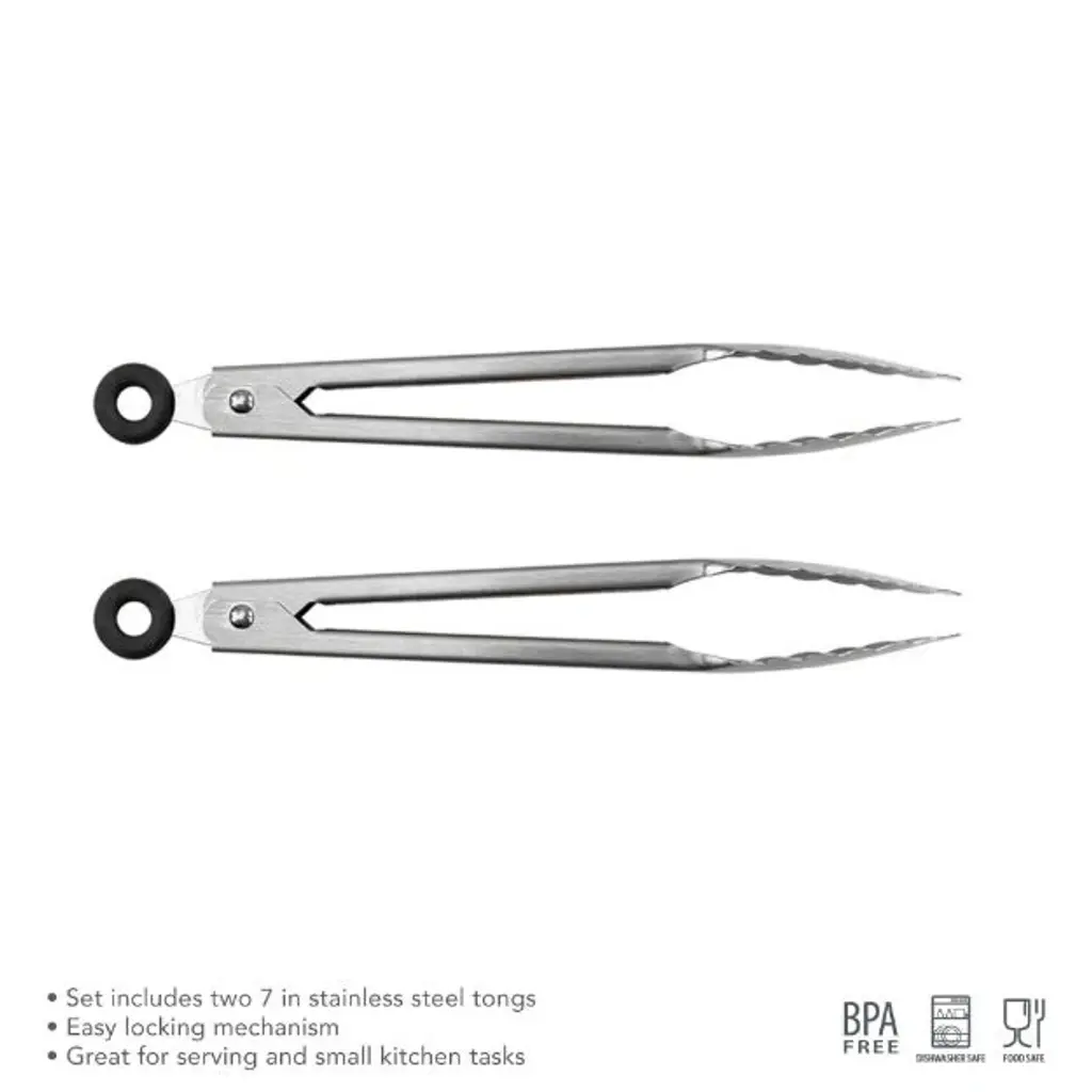 Elements 7" Mini Stainless Steel Tongs - Set Of 2