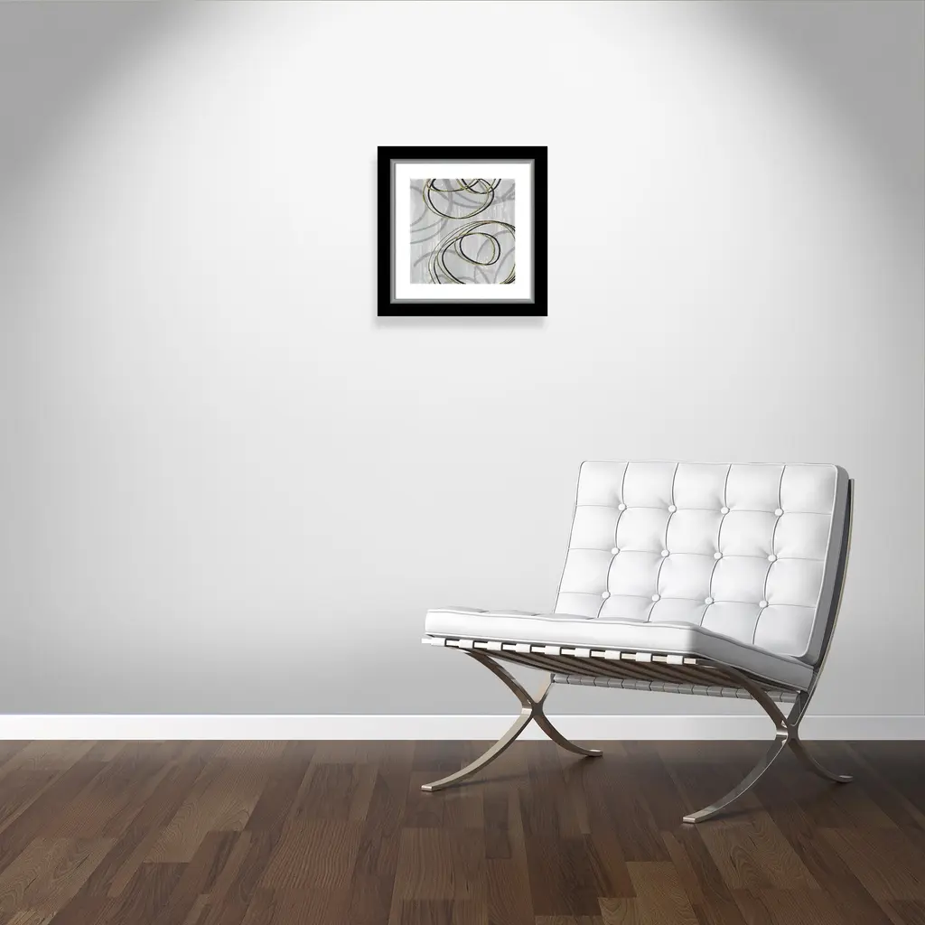 Elements in Motion', a neutral abstract image composed of coils and shadow, is a lovely transitional piece that will enhance and modern or contemporary home decor. Finished in a modern frame made of PS materials, this is the perfect addition to your walls. Archival fine art giclée print on acid-free and lignin-free 100% cotton rag paper; image includes a bright white self-matting border Printed with gallery-quality inks using the finest giclée print technology for unsurpassed color gamut and clarity Lightweight and finished under shatter-resistant acrylic; hanging hardware attached for easy and secure installation Handcrafted in the USA and ships with a Certificate of Authenticity Lightweight and finished under shatter-resistant acrylic