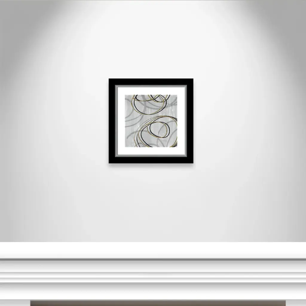 Elements in Motion', a neutral abstract image composed of coils and shadow, is a lovely transitional piece that will enhance and modern or contemporary home decor. Finished in a modern frame made of PS materials, this is the perfect addition to your walls. Archival fine art giclée print on acid-free and lignin-free 100% cotton rag paper; image includes a bright white self-matting border Printed with gallery-quality inks using the finest giclée print technology for unsurpassed color gamut and clarity Lightweight and finished under shatter-resistant acrylic; hanging hardware attached for easy and secure installation Handcrafted in the USA and ships with a Certificate of Authenticity Lightweight and finished under shatter-resistant acrylic