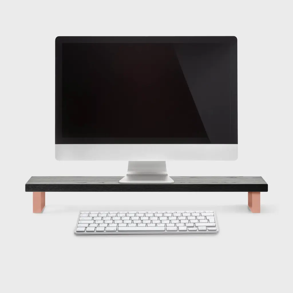 Laser-cut steel and solid wood meet to make a modern, minimalist form that elevates your monitor. Or use it as a desk shelf to display favorite items and store everyday essentials. This stand is made by craftsmen in a small workshop just off the shores of Lake Michigan.