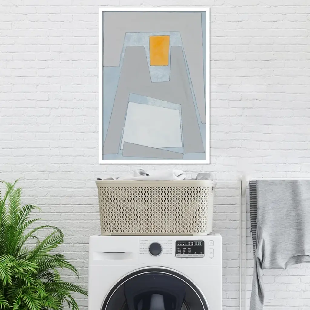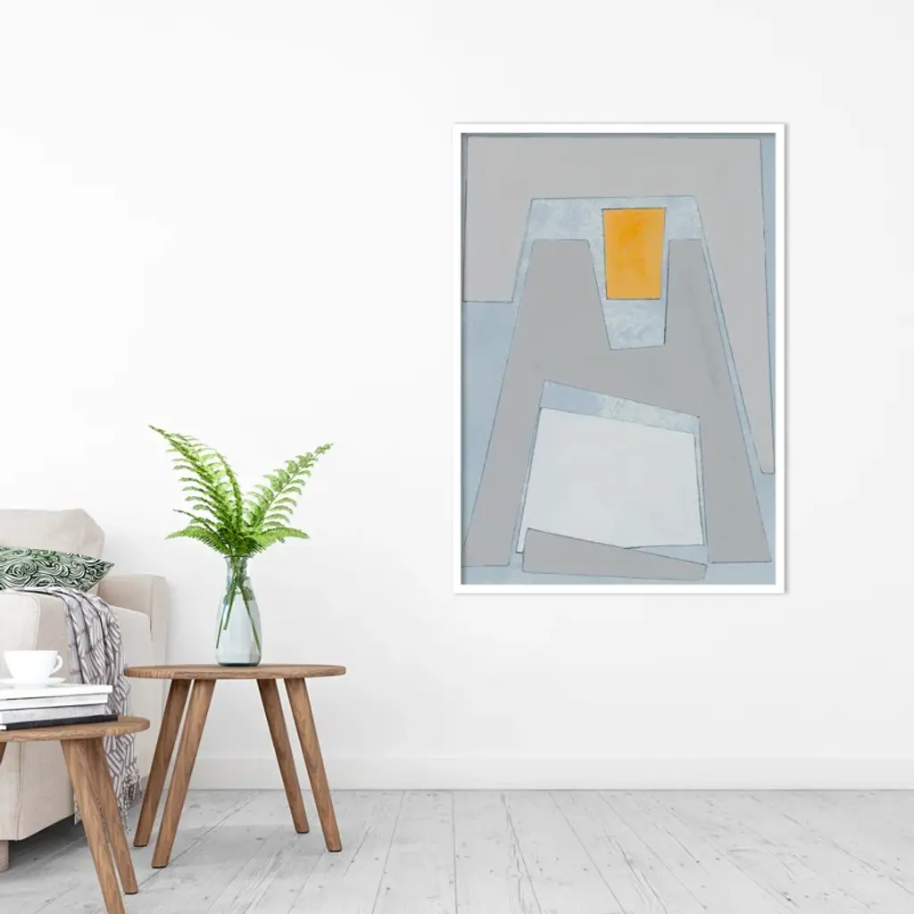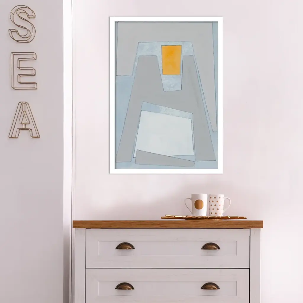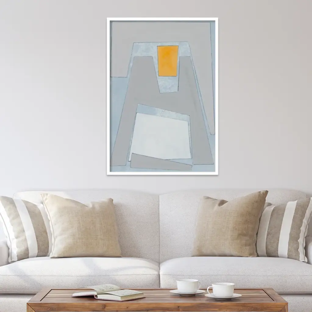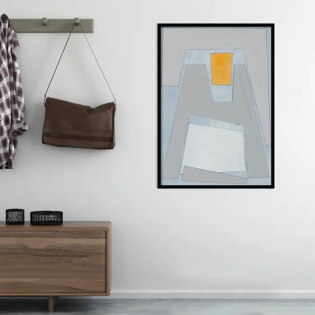 Defined by architectural elements abstracted into pure color + form, this print by artist Rob Delamater conjures an obscure + symbolically weighted sense of place – like a blueprint of a half-remembered dream. It’s giclee printed using fade-resistant inks + arrives ready to hang in a wooden frame.