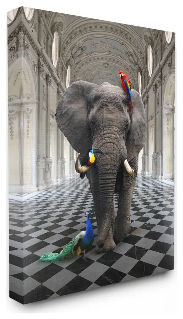 Elephant And Tropical Birds Classical Architecture Design,1pc, Each 16 X 20