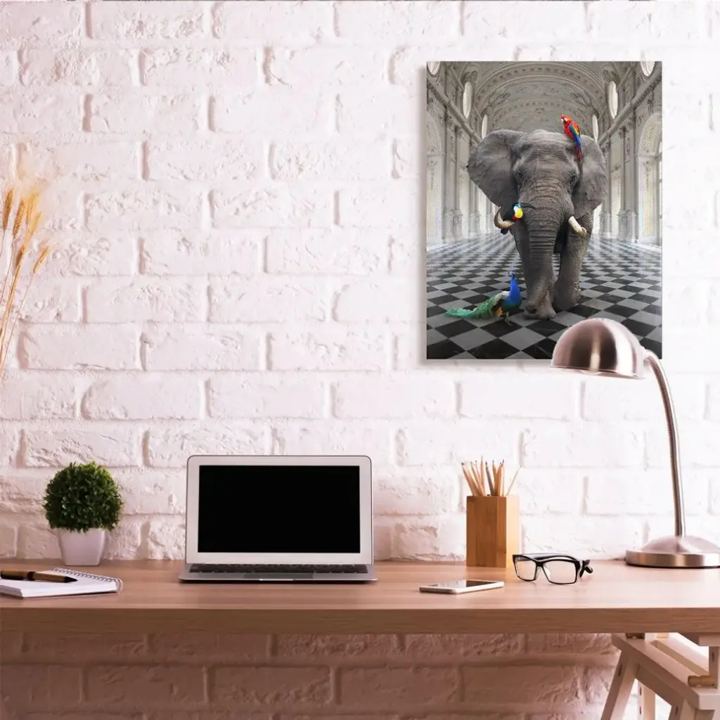 Elephant And Tropical Birds Classical Architecture Design,1pc, Each 30 X 40