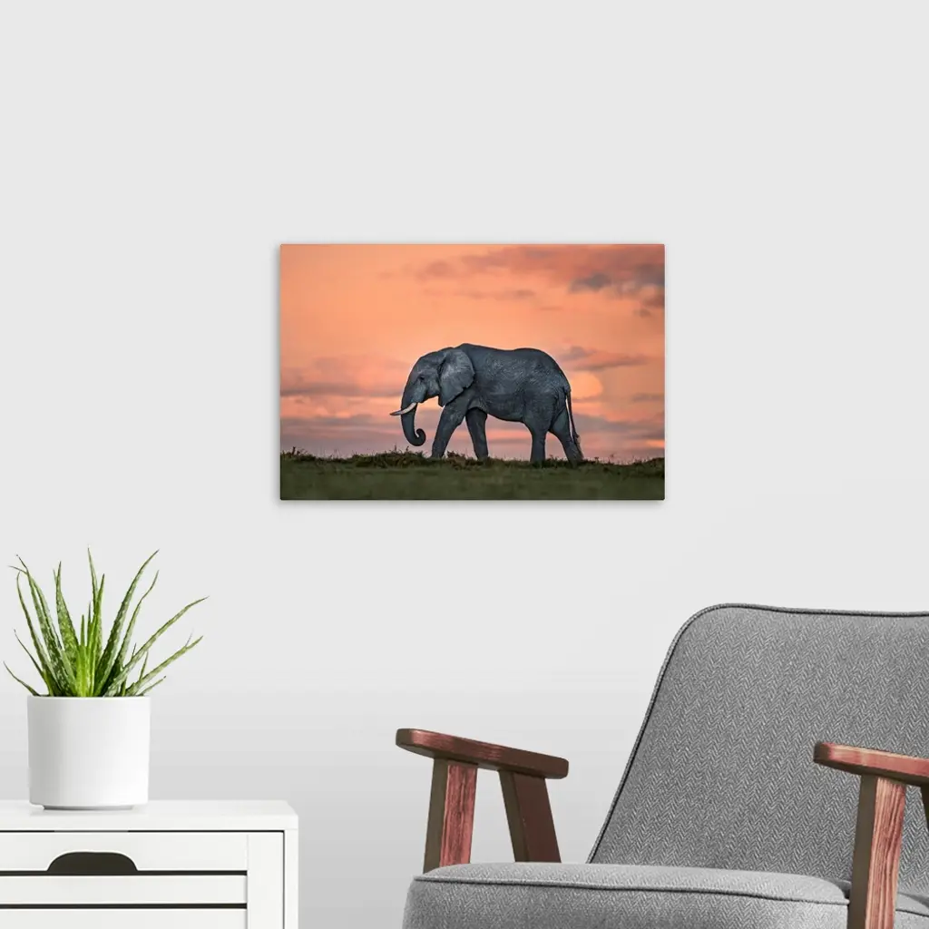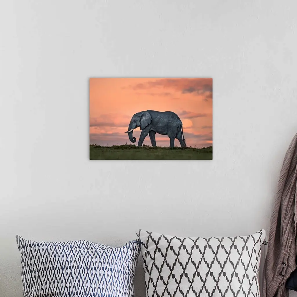Elephant At Dusk wall art for home and office decor. Discover canvas art prints, photos, mural, big canvas art and framed wall art in GreatBigCanvas.com's varied collections.