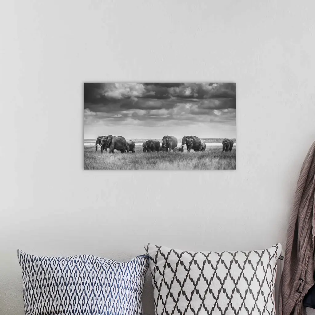 Elephant Family wall art for home and office decor. Discover canvas art prints, photos, mural, big canvas art and framed wall art in GreatBigCanvas.com's varied collections.