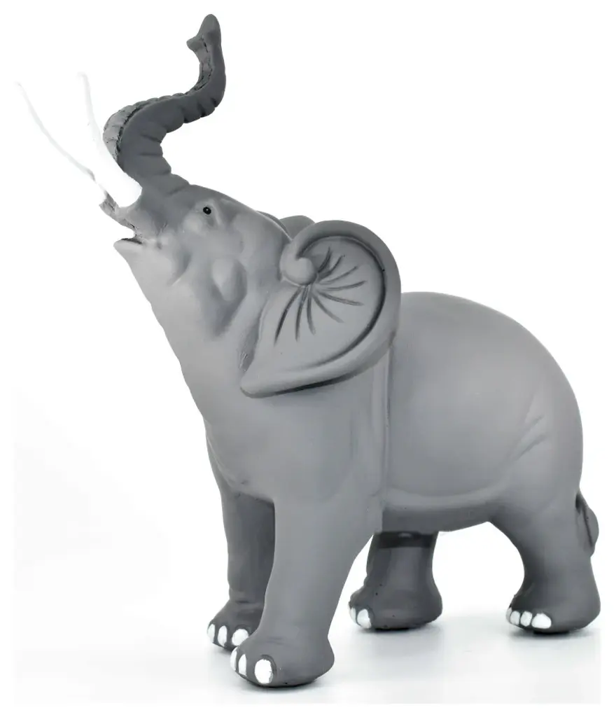 Entertain in style and wow your guests with this Arthur Court Elephant Wine Cooler. This magnificent wine and champagne cooler, shaped like an elephant standing upright, stands 22 inches high when closed, and features a hinge at the base of the neck; opening to a hollow body to house the ice. His eyes are accented by beautiful carnelian gems, and the body is manufactured with Arthur Court's premium signature aluminum alloy, accented with brass. When not in use, this cooler makes a fabulous home accent piece. An elephant kneels on its back legs and arches its head up to allow the hinged neck room to swing open and fit a bottle inside. The golden finish of the animal's feet and tusks draws extra attention to this handmade, aluminum piece.