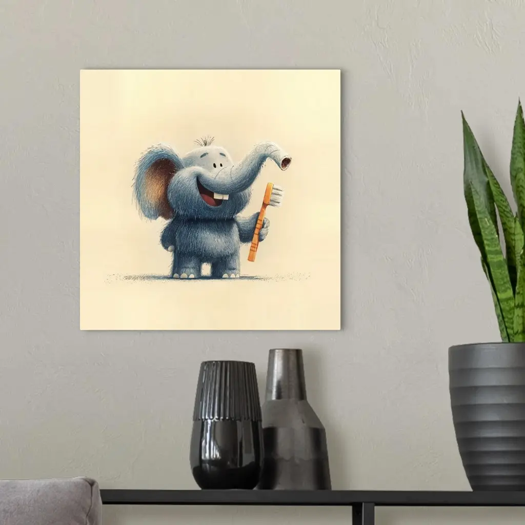 illustrated colored penicil drawing, pixar, simple, flat, fun colorful design for a theme. happy cartoon elephant lifting his trunk and brushing his teeth, clean vector illustration, pixar style --sref https://s.mj.run/jhzdDb7ZFMM https://s.mj.run/Z4OSXZ1zx0w --v 7 Job ID: 6f342bb9-e2c1-4e91-ba84-47394841d1fb