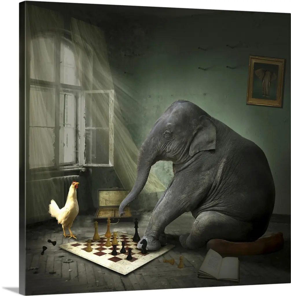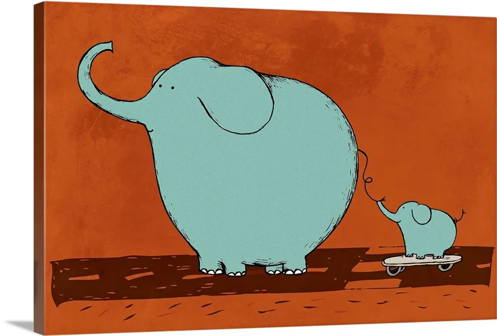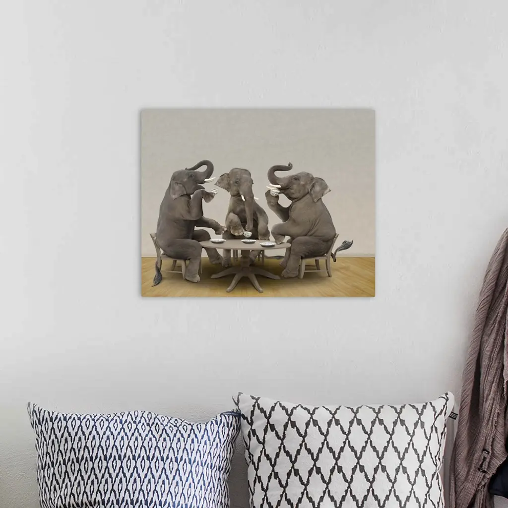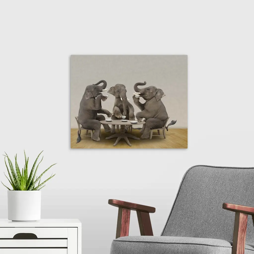 Elephants having tea party wall art for home and office decor. Discover canvas art prints, photos, mural, big canvas art and framed wall art in GreatBigCanvas.com's varied collections.