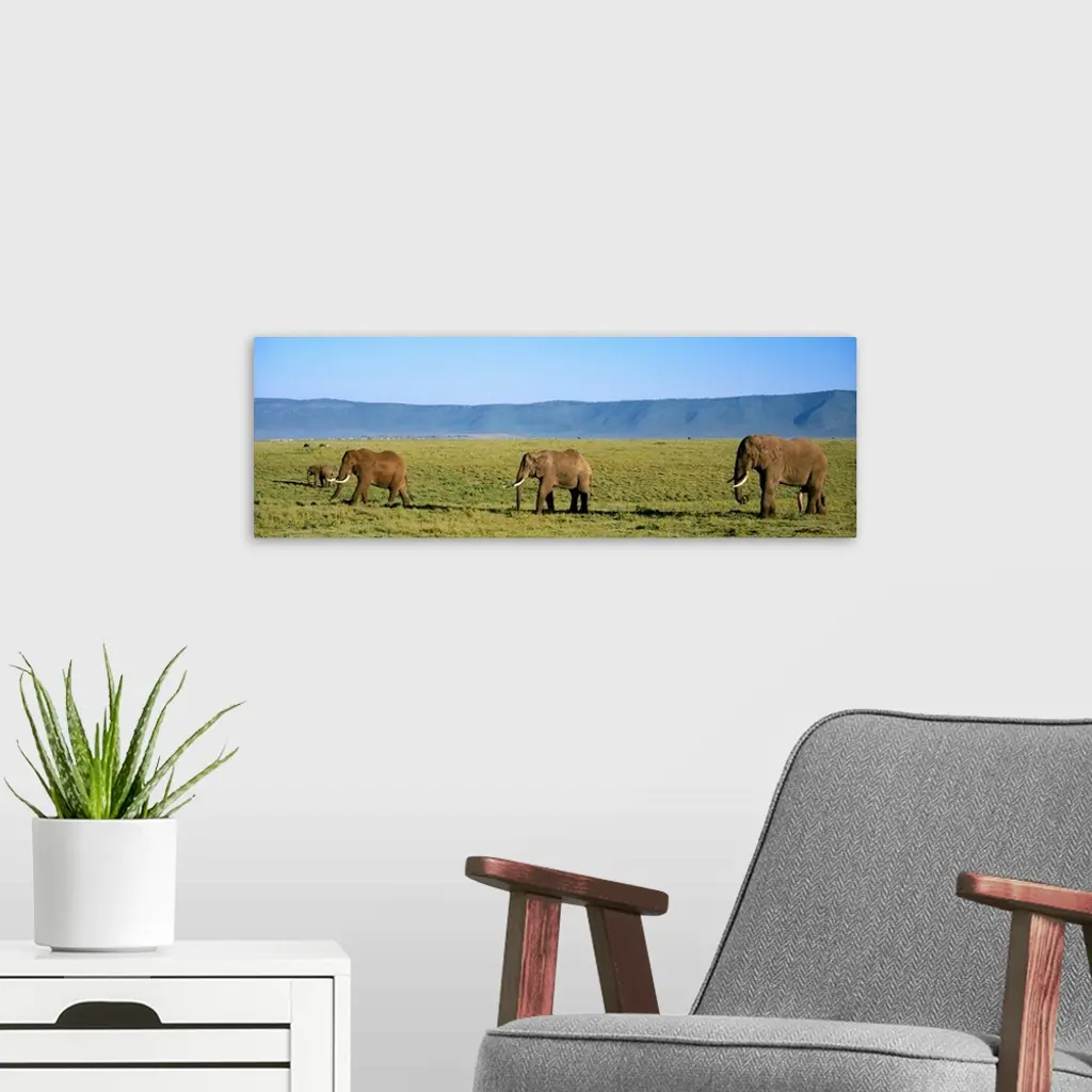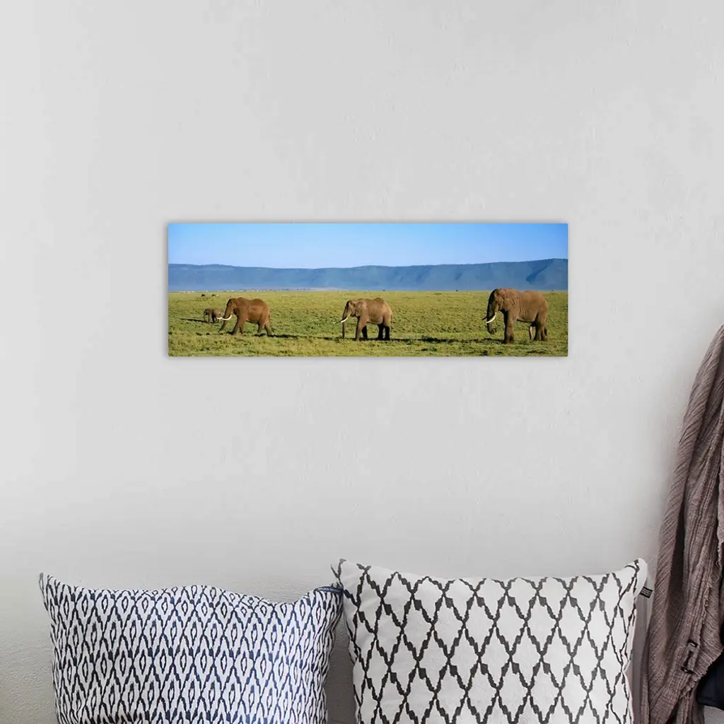 Elephants Ngorongoro Crater Tanzania Africa wall art for home and office decor. Discover canvas art prints, photos, mural, big canvas art and framed wall art in GreatBigCanvas.com's varied collections.