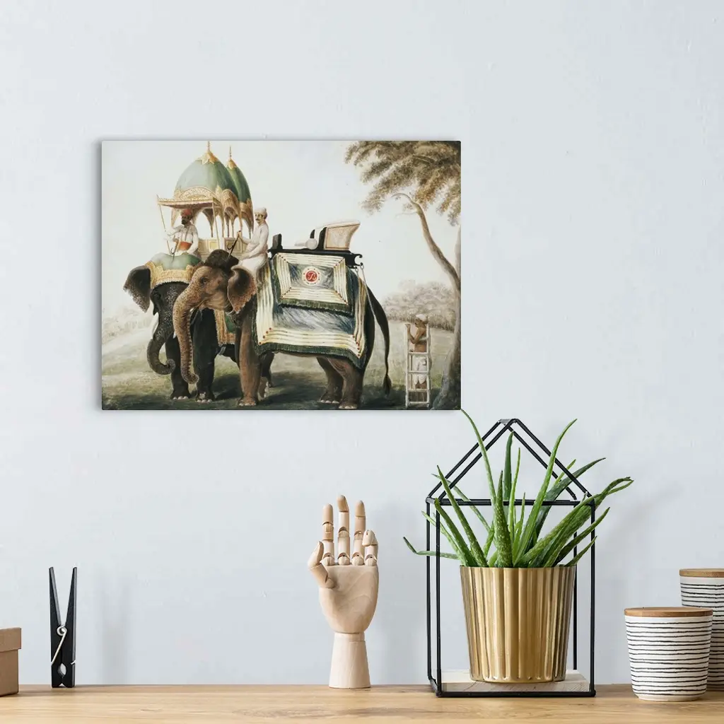 Elephants with their mahout, c.1815 (pencil and w/c heightened with white one paper)