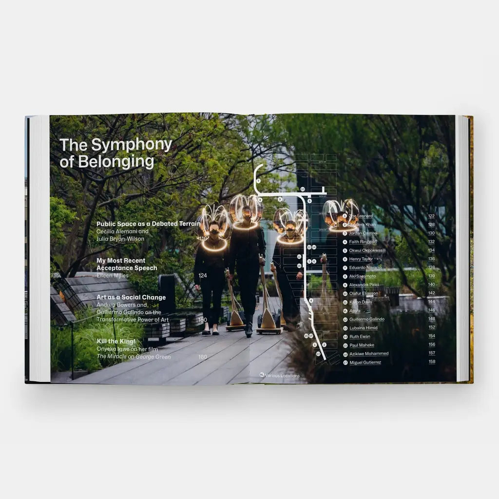 The most comprehensive and up-to-date book about the vibrant public art program of New York’s global destination, the High LineThe High Line, New York City’s famed elevated rail line-turned-greenway, hosts millions of visitors annually, providing a unique space for encountering art and performance. Elevated surveys the rich, multifaceted offerings of its public art program, High Line Art, presenting works and projects from the last decade by key artists from around the world.The book features a world-class array of projects by artists including Simone Leigh, Paola Pivi, Sam Durant, Jordan Casteel, Cecilia Vicuña, Sheila Hicks, El Anatsui, Phyllida Barlow, Faith Ringgold, Barbara Kruger, Zoe Leonard, and many others. It documents the creative evolution and vibrant cultural programming of High Line Art, which offers a city-scale canvas for artists and performers to interact with, seen in abundant photographs that chronicle the projects across the passage of seasons in the park.Through voluminous photographs and unique conversations with the participating artists, as well as essays by key critics such as Julia Bryan-Wilson and Aruna D’Souza, this book surveys the dozens of open-air installations, billboards, murals, video projects, and participatory events that demonstrate the unique and vibrant impact High Line Art has had on both New York City and the art world.