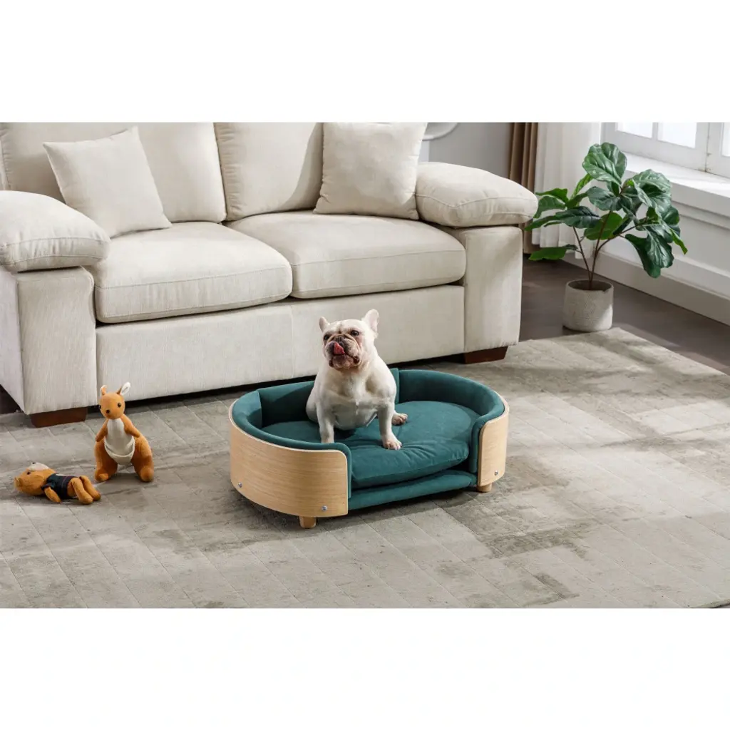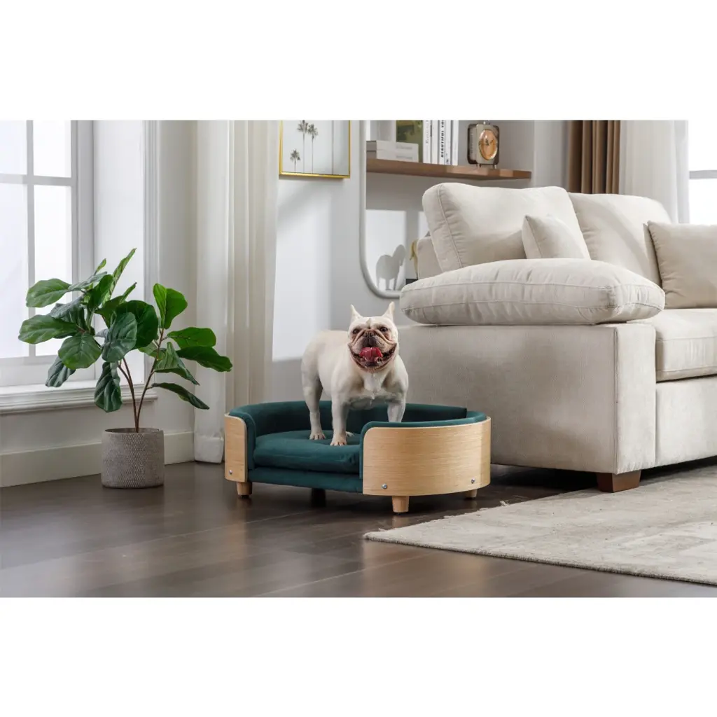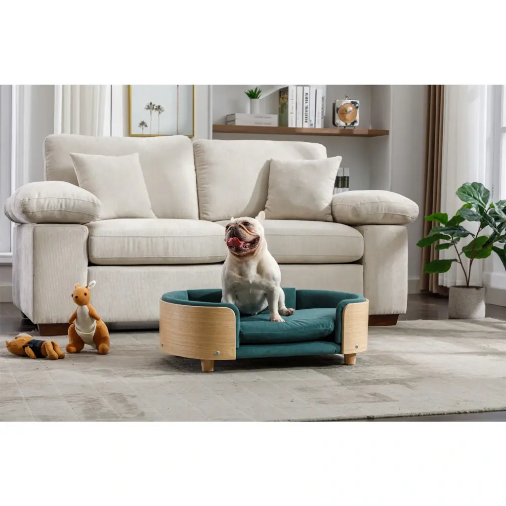 The bed frame's contemporary Modern-century complements all home interior styles; featuring clean lines and a wood finish, the bed frame is made to look good in any room of the house. Removable/washable cushion cover CAT & DOG BED: A must have accent for your home, our Cat & Dog Sofa Bed is a charming piece of Luxury Pet Furniture and a special place for your pet to rest and relax Created with premium soft Stain Resistant Fabric, our Dog Beds for Small Dogs and Medium Size Dogs are perfectly completed with carved wood legs to offer a timeless style EASY ASSAMBLE: The bed frame comes with pre-drilled partitions that make assembly a breeze; no special tools needed,Only legs need assamble