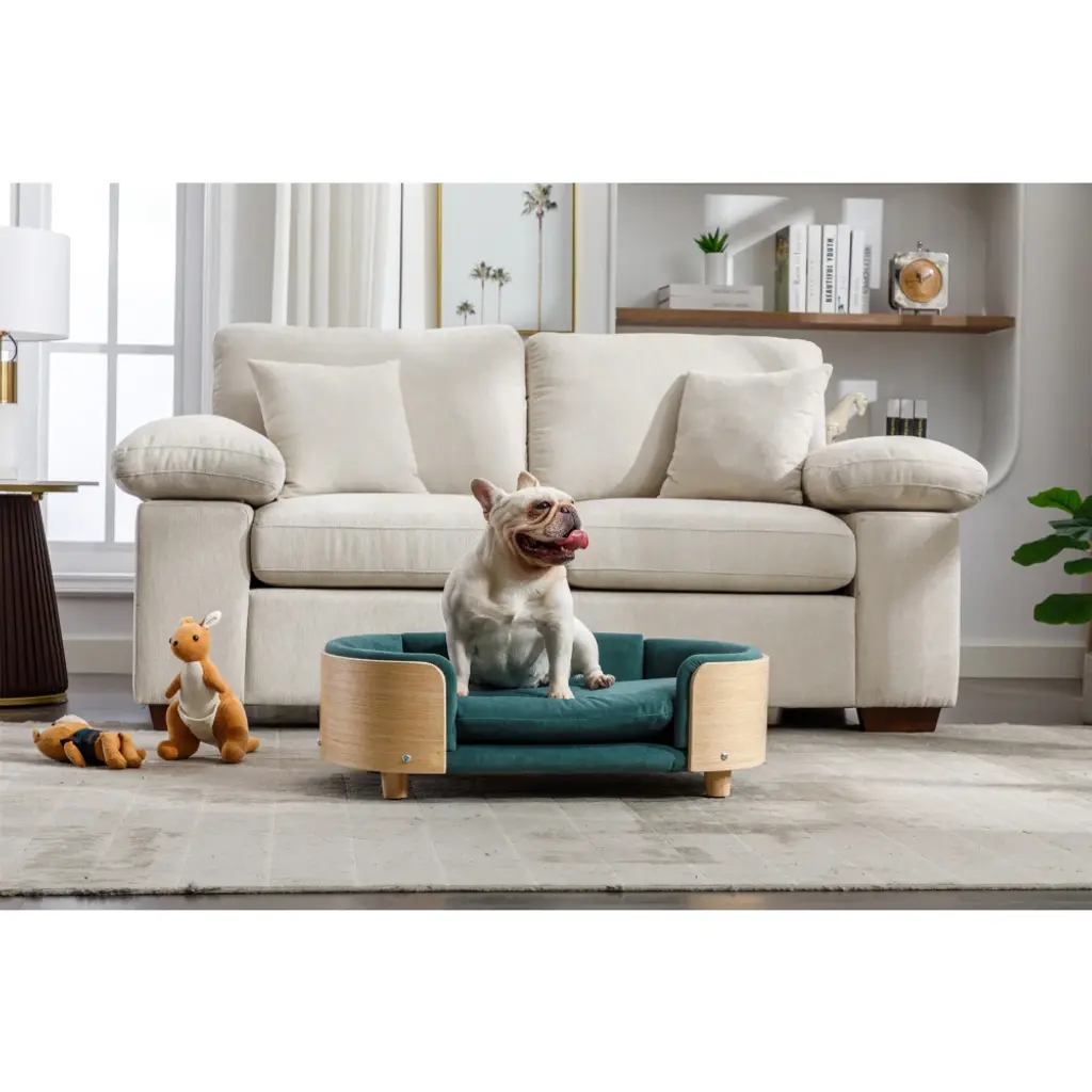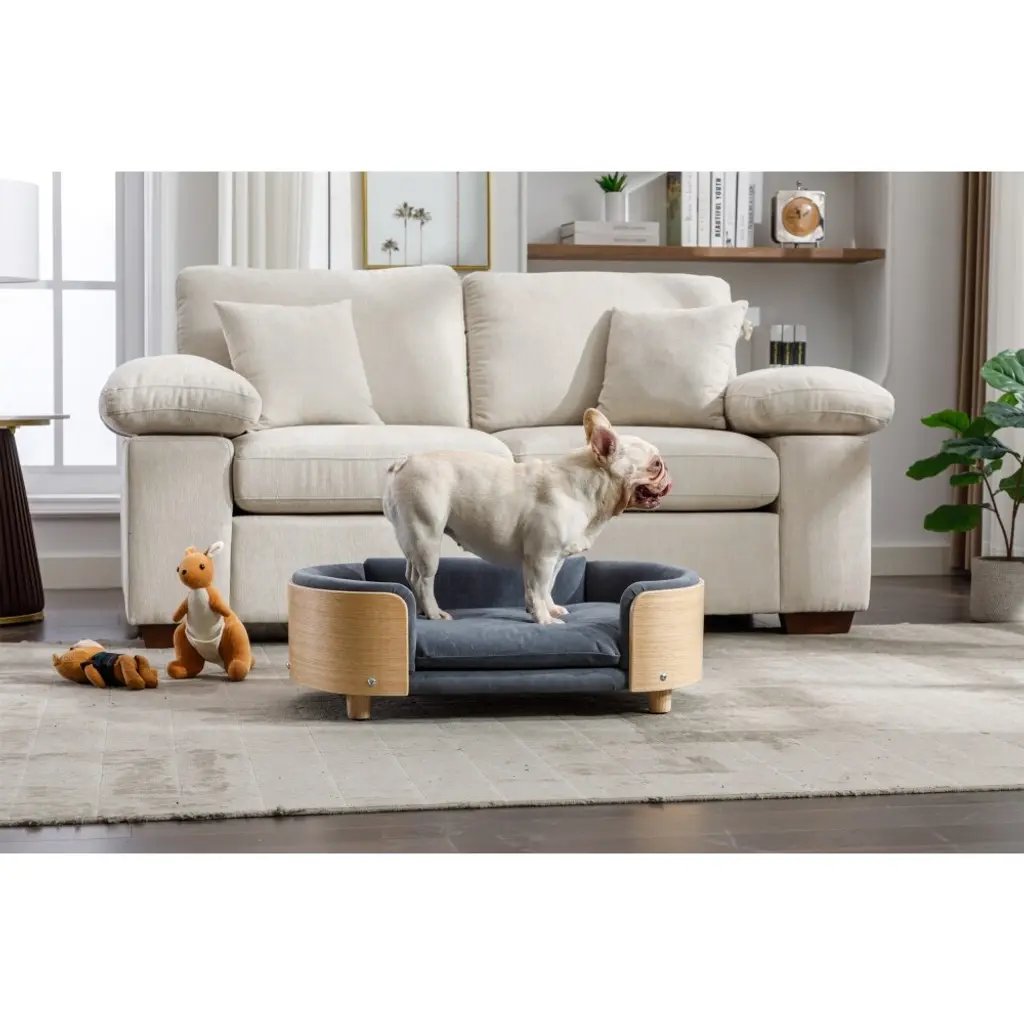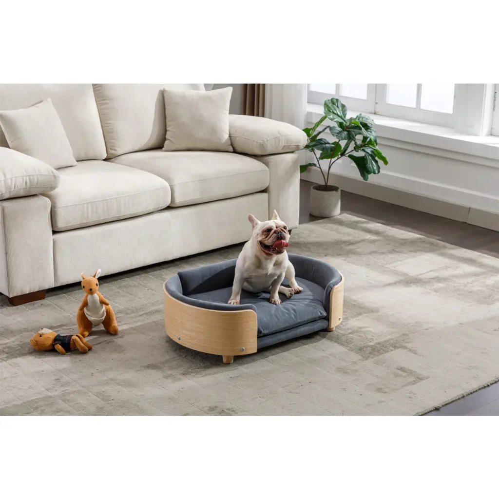 Elevated Dog Bed Pet Sofa With Solid Wood Legs And Bent Wood Back - Light Grey