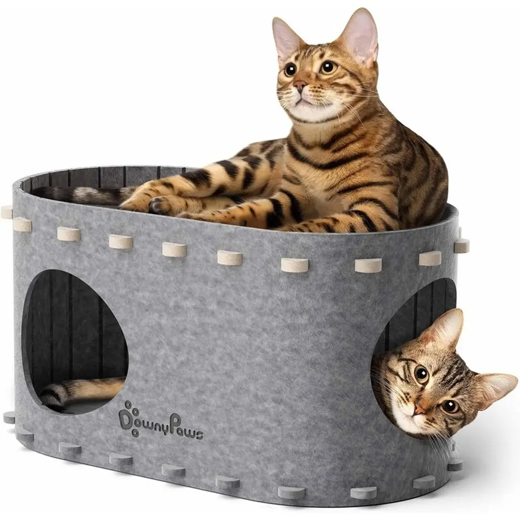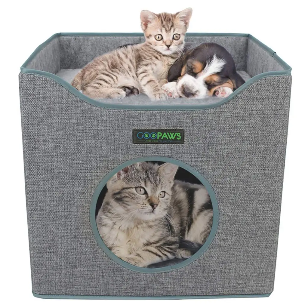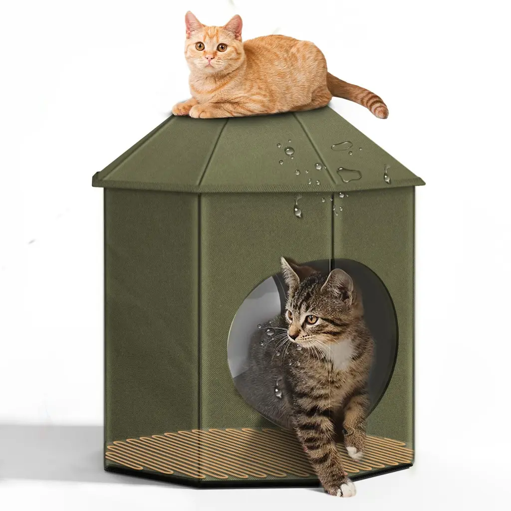 Safe Heating Pad: Equipped with a waterproof heating pad rated at 30W, this heated cat house provides a heating temperature range of 40℃ to 60℃ (104-140℉), ensuring your cat stays warm in cold weather. It is particularly suitable for use in winter or colder regions. With built-in power failure protection and an intelligent thermostat, it can continuously stay powered on while offering over-temperature and over-current protection for the safe use of the heating pad. Powerful Insulation: The interior features heat-reflective materials like aluminum foil and pearl cotton, which effectively trap warmth inside the cat shelter. With a blanket provided, this combination ensures your cat's belly and other body parts remain cozy. High Waterproof Capability: Made from 900D Oxford cloth and a dual-layer PVC waterproof coating, this waterproof heated cat house minimizes moisture and cold air intrusion, offering a comfortable refuge even in rainy or winter conditions. Sturdy and Stable (for large and middle size option): Featuring a sturdy and safe structural design, the bottom iron pipes and army bed design significantly enhance the load-bearing capacity of this outdoor cat house heated. The added wind stakes ensure greater stability in outdoor environments, while the surrounding PP pipes provide stronger support, ensuring stability across various terrains. Sturdy and Stable (for small size option): Our base has 5 support legs for enhanced stability compared to 4, and the outdoor heated pet shelter is reinforced with PP support pipes, ensuring it remains steady even in windy conditions. Private and Comfortable Design: Private and Comfortable Design: The internal dimensions of 61×32cm/24.01×12.59 in (Large size option) / 52×33cm/20.47×12.99 in (Middle size option) / 30×39cm /15.35×11.81 in (Small size option) accommodate medium to small cats easily, while the door curtain size of 15×18cm/5.90×7.08 in provides convenient access for your feline friend, making this outdoor cat house heated an ideal choice for your pet. Friendly reminder: In extreme weather conditions such as rain or snow, please promptly move the heated cat house to avoid prolonged exposure to wet conditions. It is not recommended for cats longer than 61cm/24.01in (Large size option) / 52cm/20.47 in (Middle size option) / 39 cm/15.35 in (Small size option) to enter the cat shelter. Large and Middle size Package Content 1 × Instruction Manual 4 × Wind Pegs 1 × Heating Pad 1 × Plush Cushion 1 × Shelter Body 1 × Roof 4 × Camp Bed Supports 12 × Fiberglass Rods 8 × T-Joints Small size Package Content 1 × Instruction Manual 4 × Wind Pegs 1 × Heating Pad 1 × Plush Cushion 1 × Shelter Body (with Roof) 12 × Fiberglass Rods 8 × T-Joints