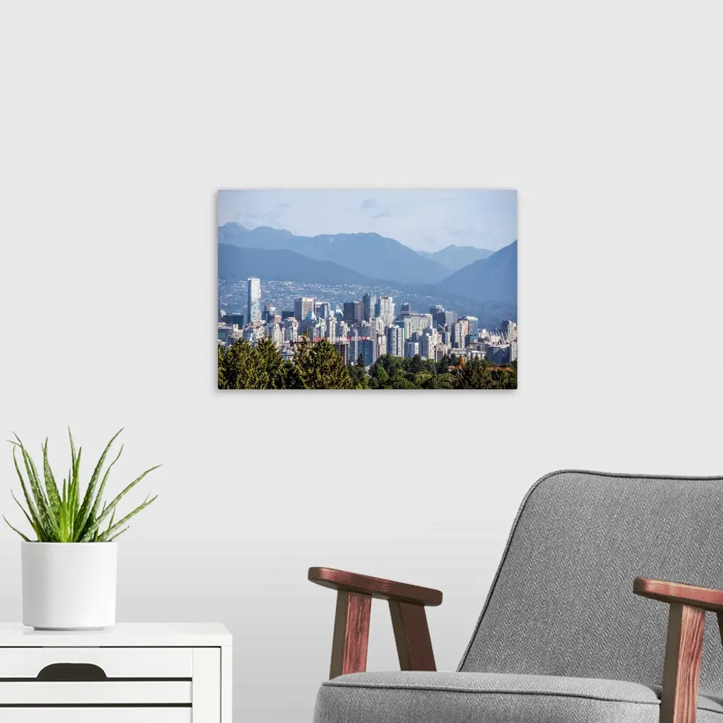 Elevated view of downtown Vancouver in British Columbia, Canada.
