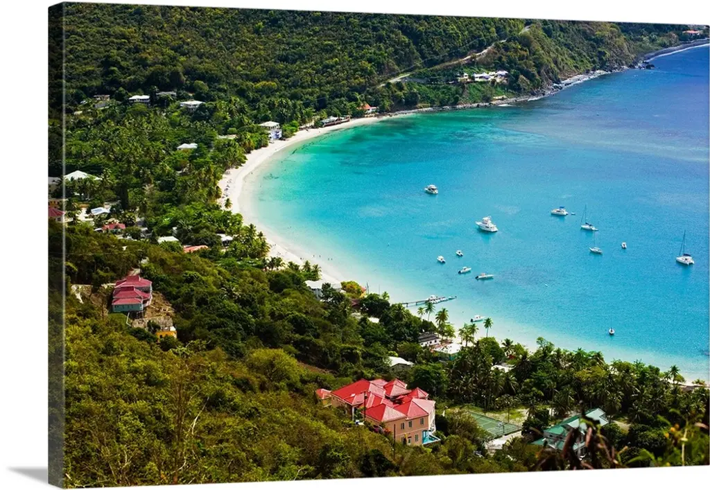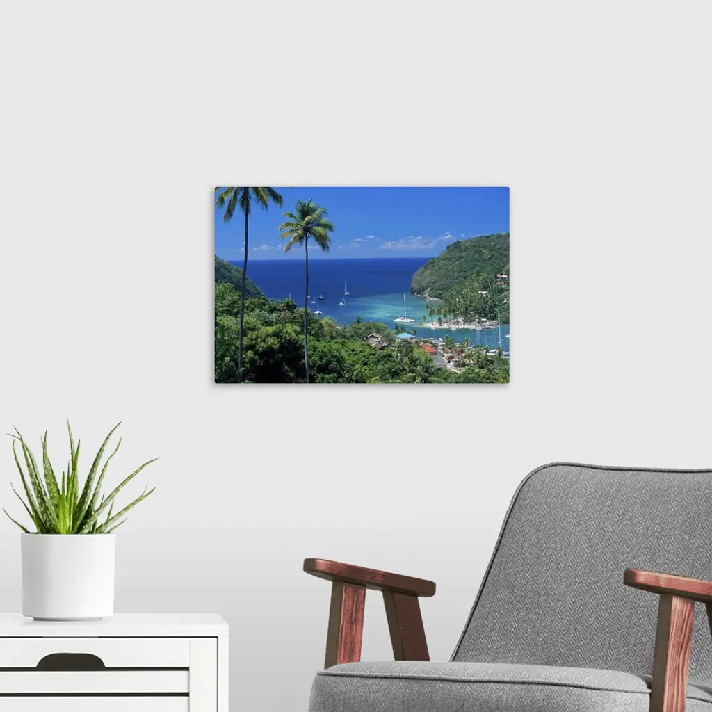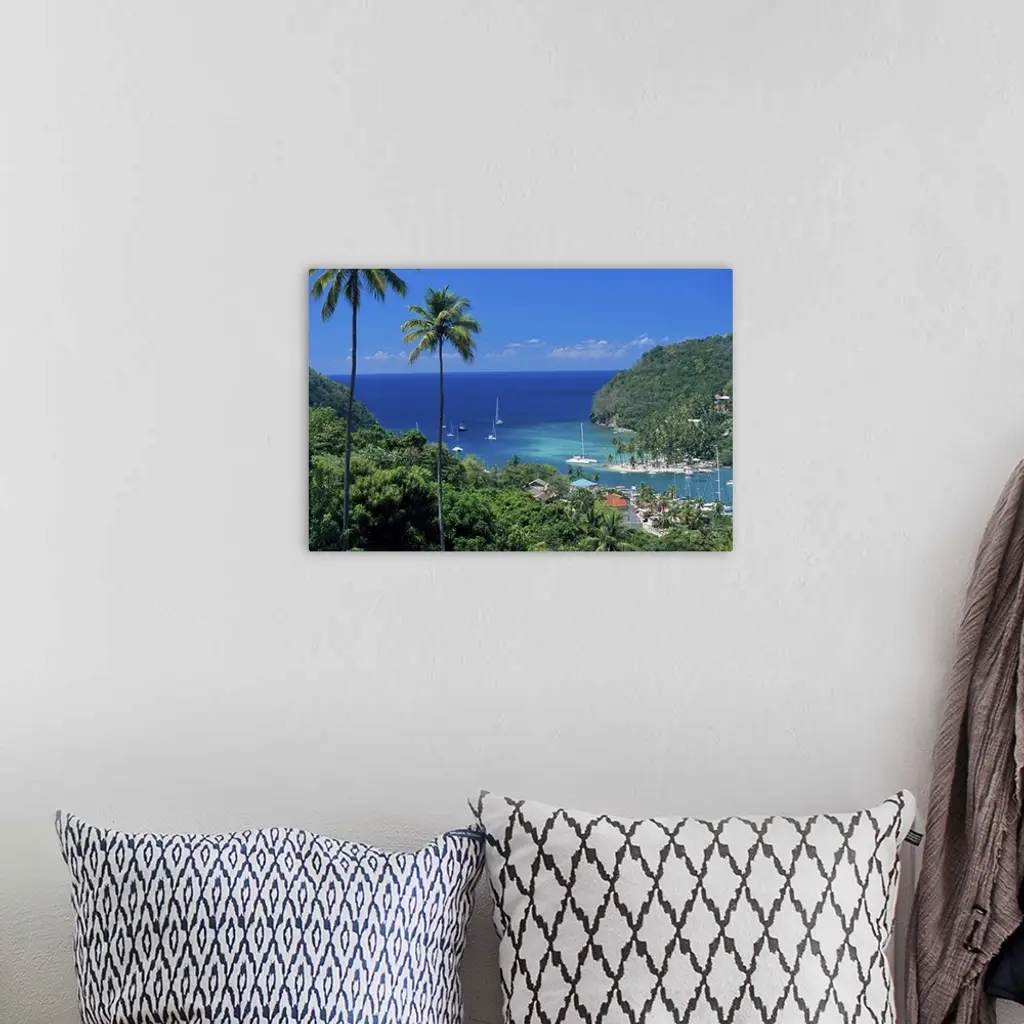 Elevated view over Marigot Bay, island of St. Lucia, Windward Islands, Caribbean wall art for home and office decor. Discover canvas art prints, photos, mural, big canvas art and framed wall art in GreatBigCanvas.com's varied collections.
