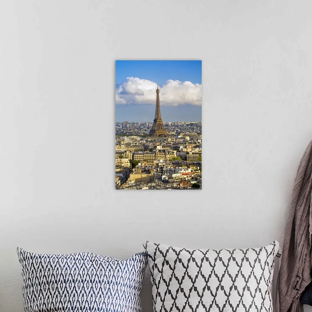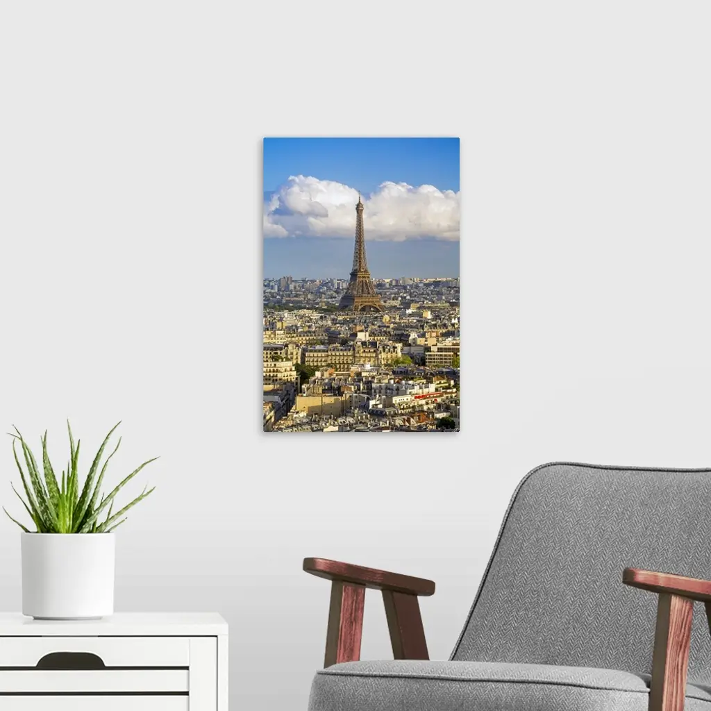 Elevated View Over The City With The Eiffel Tower In The Distance, Paris, France