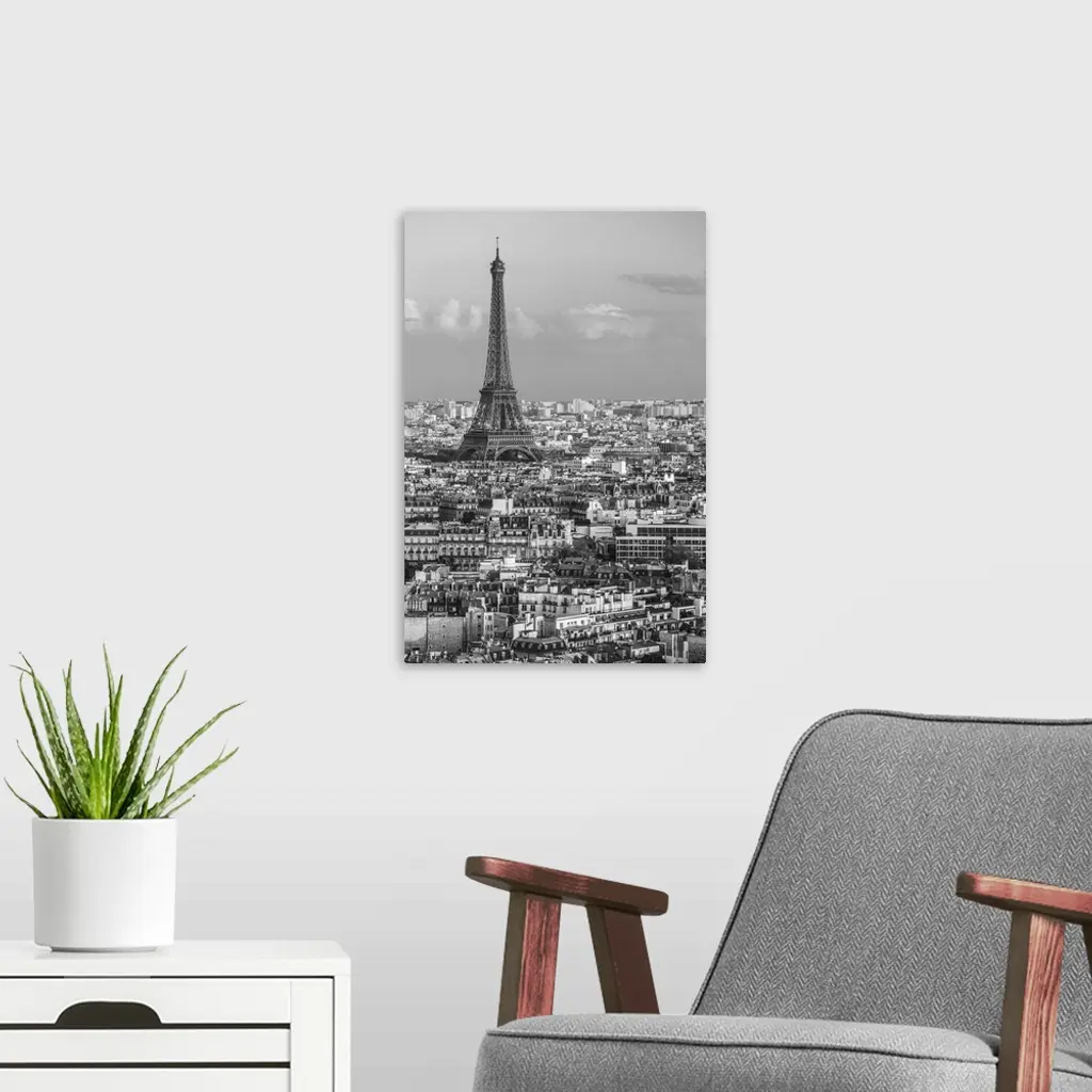 Elevated View Over The City With The Eiffel Tower In The Distance, Paris, France