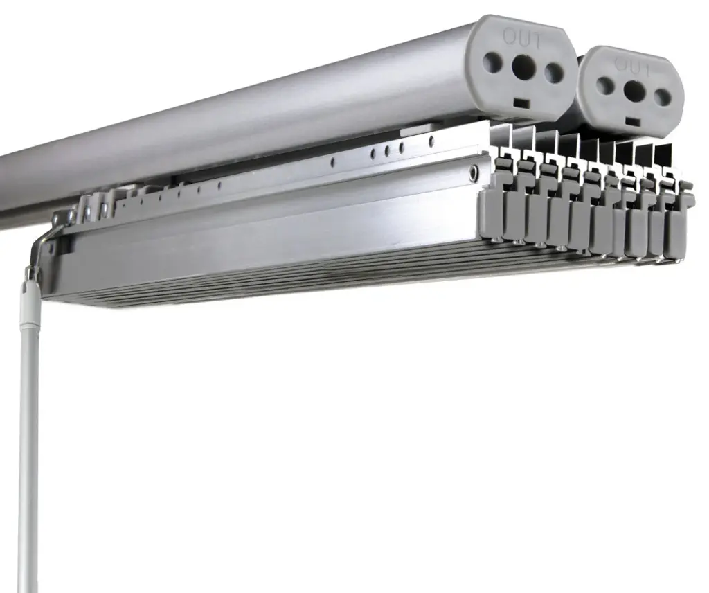 Central Design Products is pleased to introduce a new innovative panel track that offers easy 2-way installation, adding an alluring style and refined touch to your home decor. The double rail design of the track is sleek, compact, and reduces the overall footprint and weight of the installation, eliminating bulky, intrusive window treatments. Adjusting the panel height is a breeze � simply trim the panel, re-attach the liner, and install the panel weight. Detailed instructions are included.The panel track also features a patented slider design, made with aluminum and fitted with bearings that allow for durable and smooth operation. The sliders are stacked closer together than conventional panel tracks, reducing light bleed coming from the gaps between panels. This track has endless uses from dividing rooms, garages, offices, and closets to decorating windows and patios. Available in smaller sizes including 3, 4, 5, 6, and 7 panels. Extends from 120-218� wide. Each panel measures 23.5" wide and 91.5" tall, with a total installation height of 94" (includes the 2.5" rail track). The track can be wall or ceiling mounted. The panels can stack on the left or the right. The clearance from the wall is extendable from 1.25� to 3.25� and projection from the wall is extendable from 3� to 4.25�. Eliana panel is made from 69% Vinyl 31% Polyester, with a light filtering shade that blocks 50% of the light.