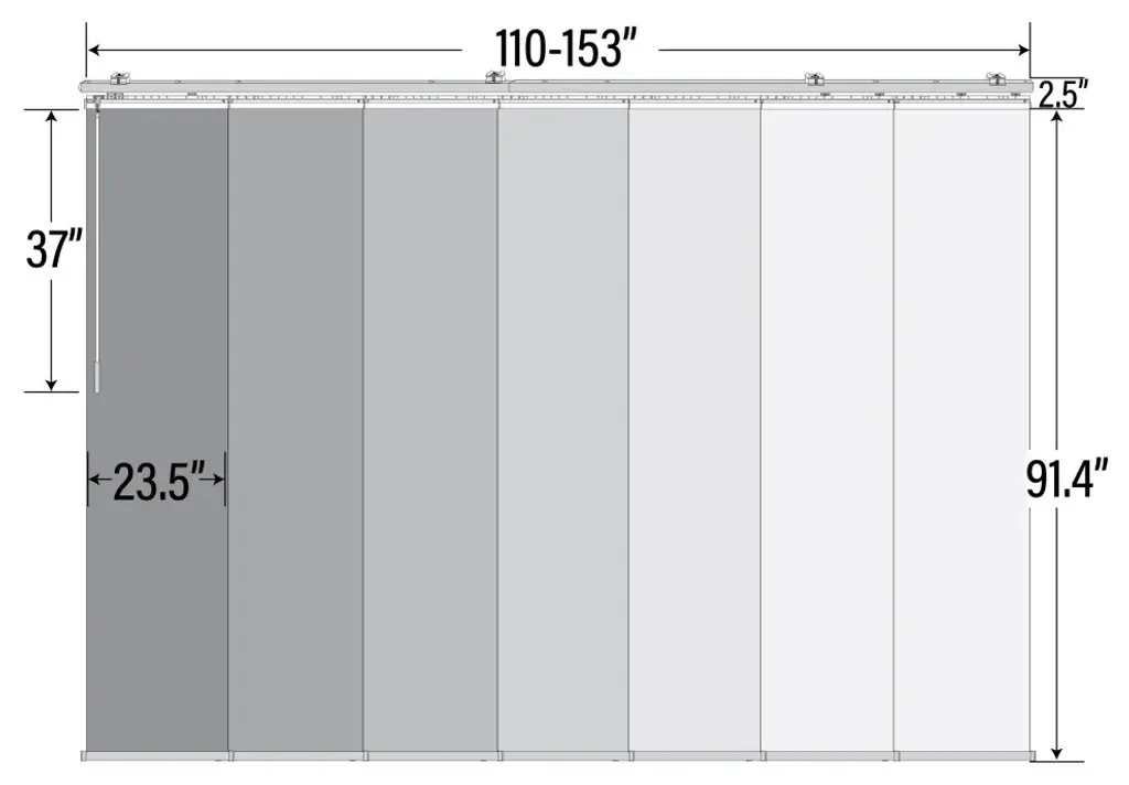 Central Design Products is pleased to introduce a new innovative panel track that offers easy 2-way installation, adding an alluring style and refined touch to your home decor. The single rail design of the track is sleek, compact, and reduces the overall footprint and weight of the installation, eliminating bulky, intrusive window treatments. Adjusting the panel height is a breeze � simply trim the panel, re-attach the liner, and install the panel weight. Detailed instructions are included.The panel track also features a patented slider design, made with aluminum and fitted with bearings that allow for durable and smooth operation. The sliders are stacked closer together than conventional panel tracks, reducing light bleed coming from the gaps between panels. This track has endless uses from dividing rooms, garages, offices, and closets to decorating windows and patios. Available in larger sizes including 8, 10, and 12 panels. Extends from 110-153� wide. Each panel measures 23.5" wide and 91.5" tall, with a total installation height of 94" (includes the 2.5" rail track). The track can be wall or ceiling mounted. The panels can stack on the left or the right. The clearance from the wall is extendable from 1.25� to 3.25� and projection from the wall is extendable from 3� to 4.25�. Eliana panel is made from 69% Vinyl 31% Polyester, with a light filtering shade that blocks 50% of the light.