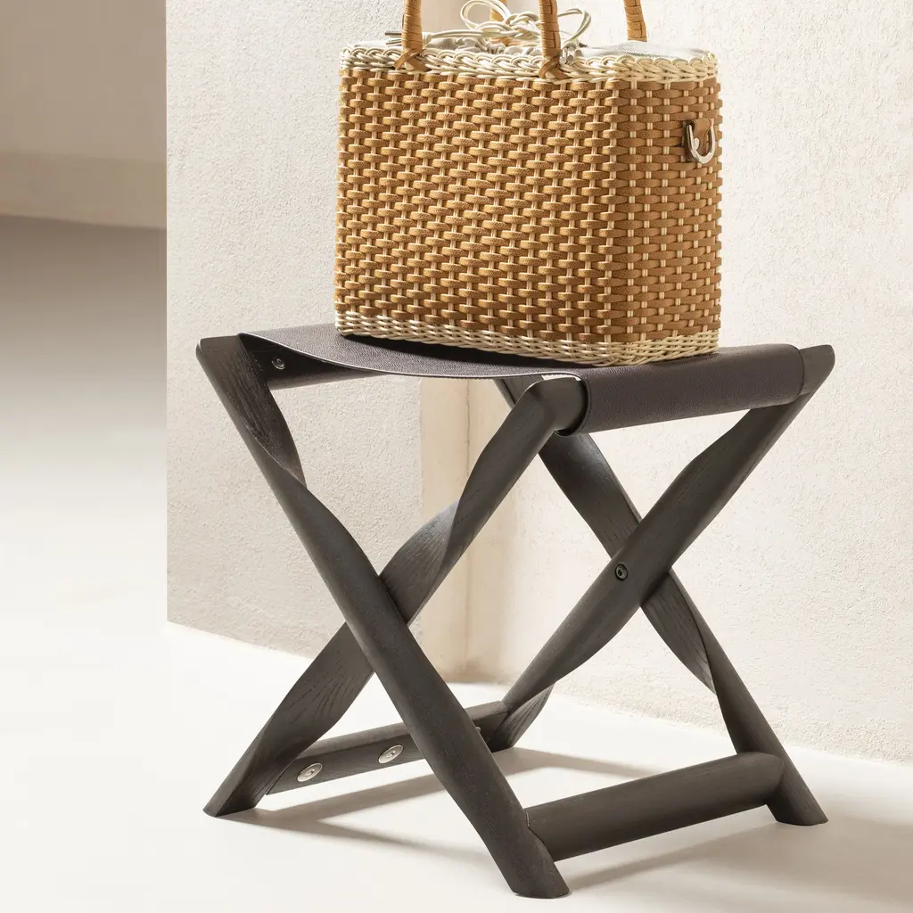 Offer a gesture of refined hospitality with the Elica Folding Luggage Rack from Giobagnara. Expertly handcrafted in Italy, this piece features a sturdy solid oak frame paired with supple calfskin leather straps for a soft yet durable rest. Inspired by the iconic Elica stool, its smart folding design is secured by a magnetic closure, making it both space-saving and effortlessly chic. An elegant perch for luggage, it is a perfect addition to any guest suite or dressing room. Highlights: