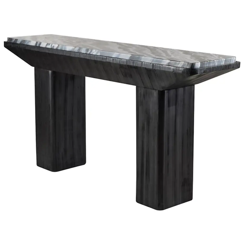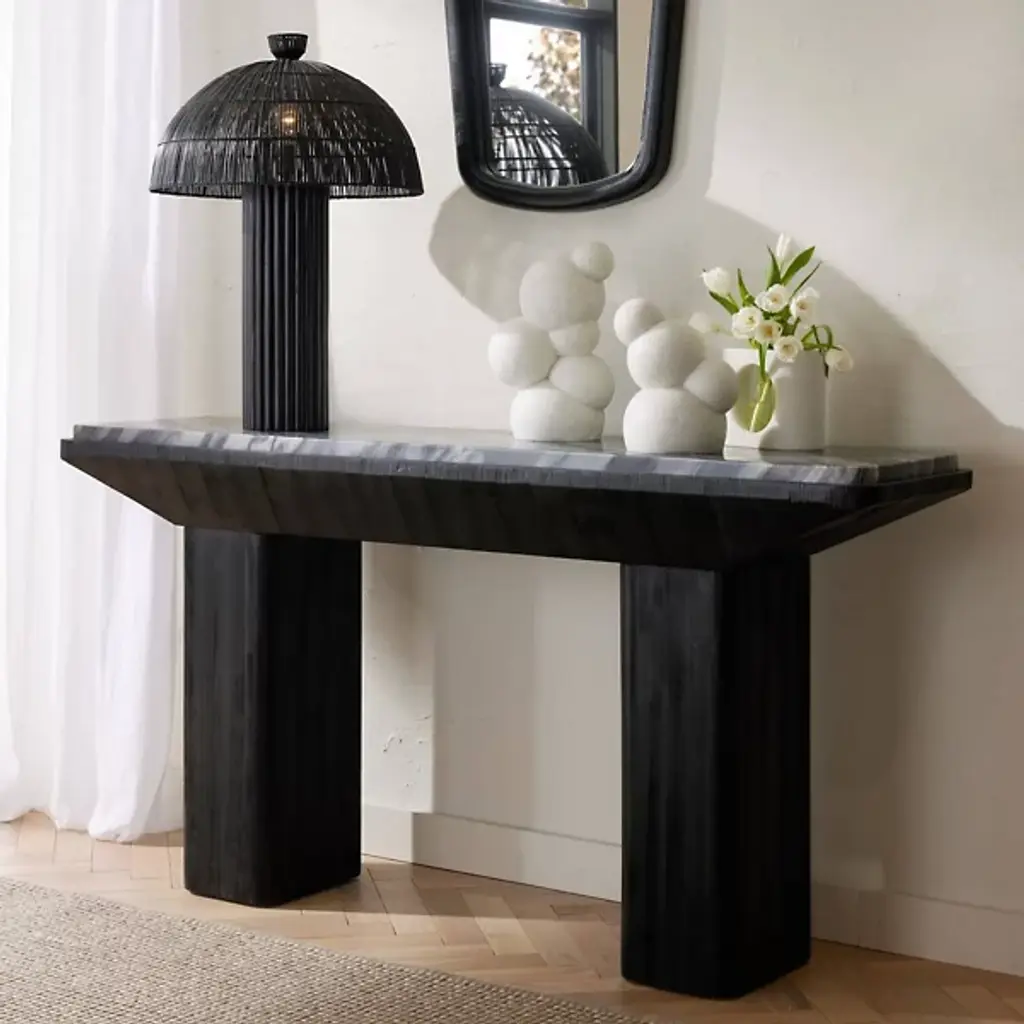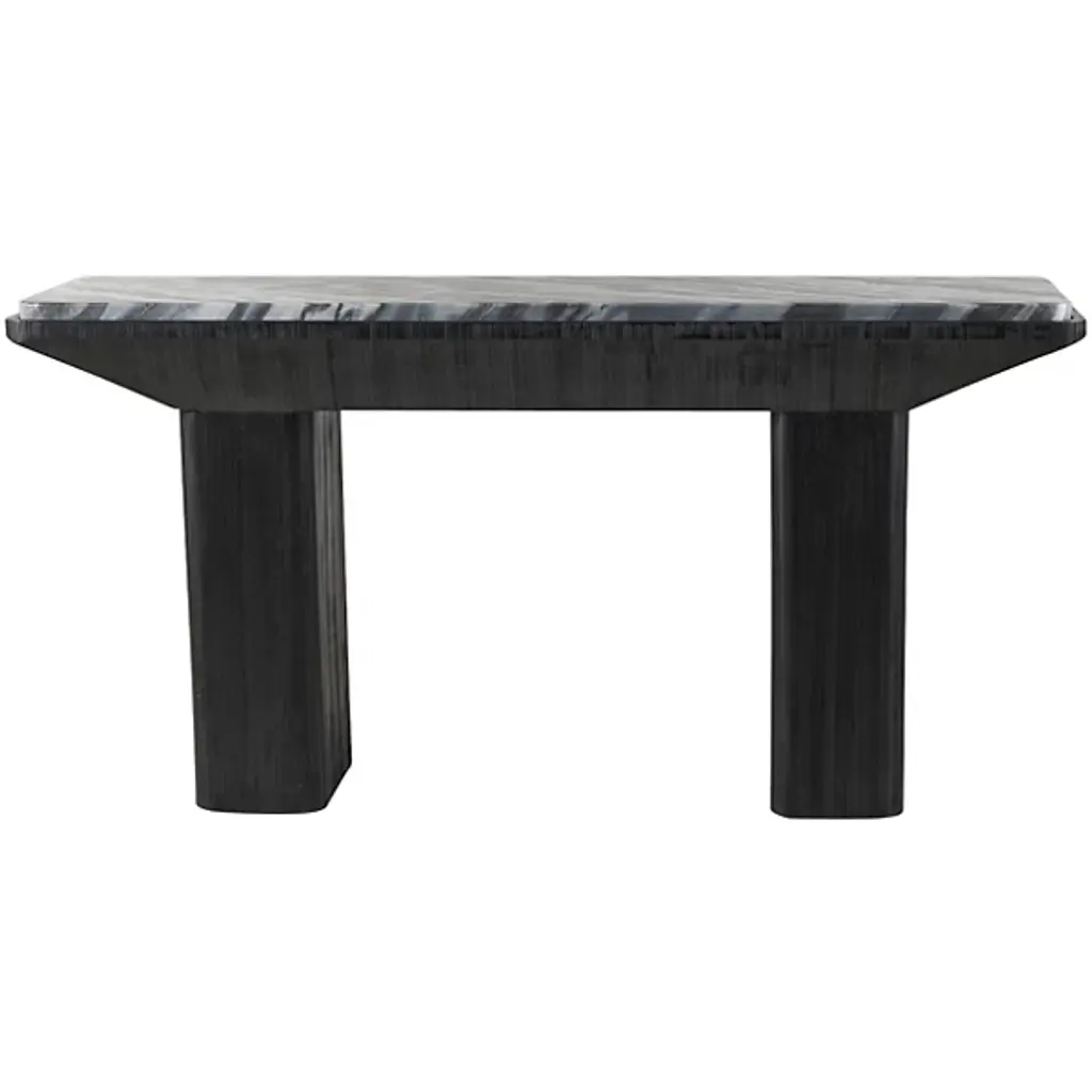 The Elio Console from Arteriors was designed to bring a ceremonial touch to your space. Crafted from rich ebony mango wood in a striking plinth shape, this exquisite piece is beautifully balanced by radius pillars and topped with an impressive slab of galaxy marble, creating an eye-catching focal point. The marble's unique variations ensure that each console is one-of-a-kind. Perfect for adding a touch of grandeur to any space, this console seamlessly blends functionality with artistic elegance.