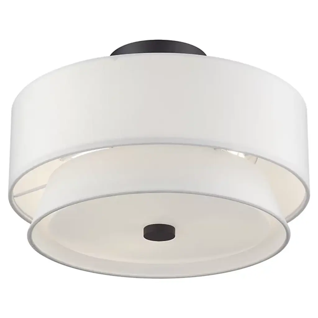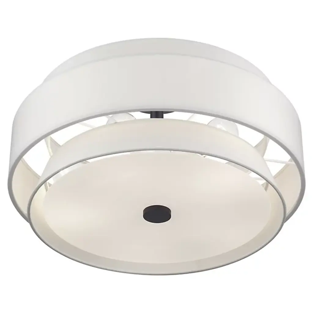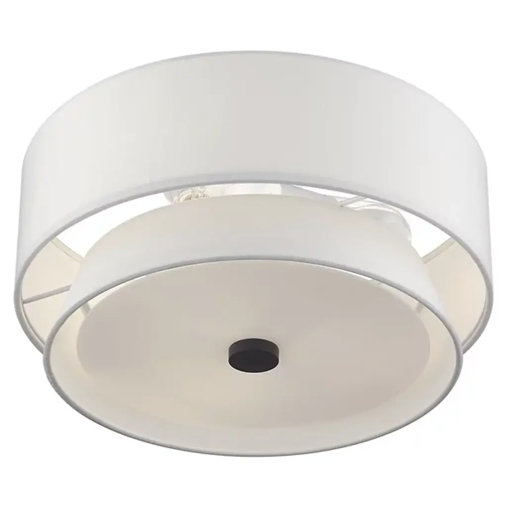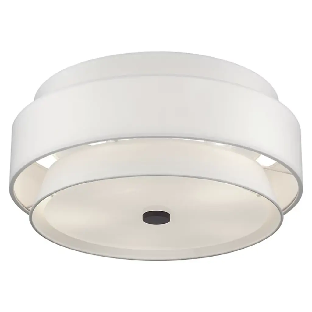 The Eliotte Semi Flushmount from Alder & Ore adds an expressive transitional style with its elegant double drum shade. Its handsome design draws the eye, as this fixture features a handcrafted off-white fabric hardback shade complemented by a satin white acrylic diffuser, offering a soft and subtle illumination. The design is constructed from durable steel and blends classic charm with contemporary elegance, bringing a sophisticated presence that casts a radiant glow.