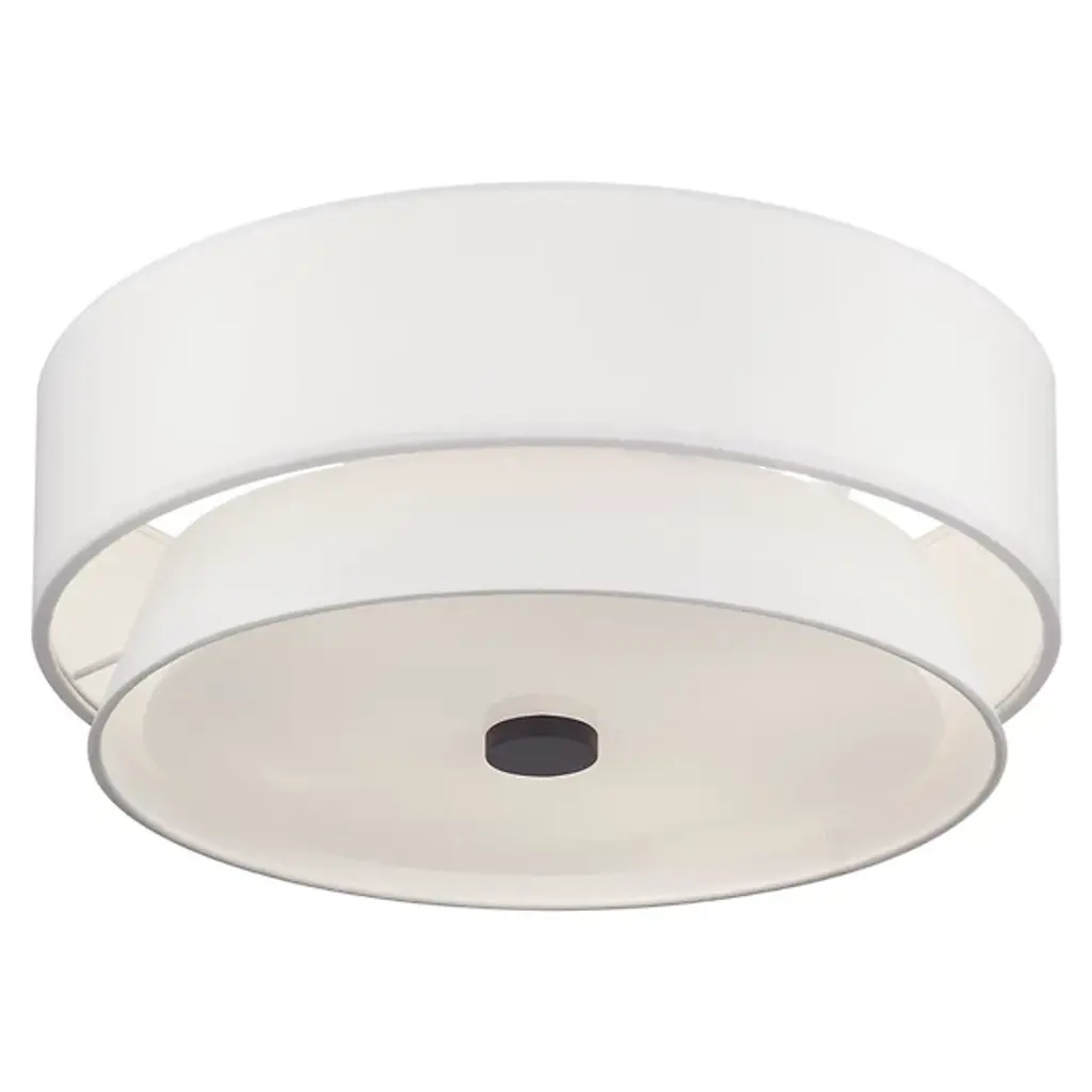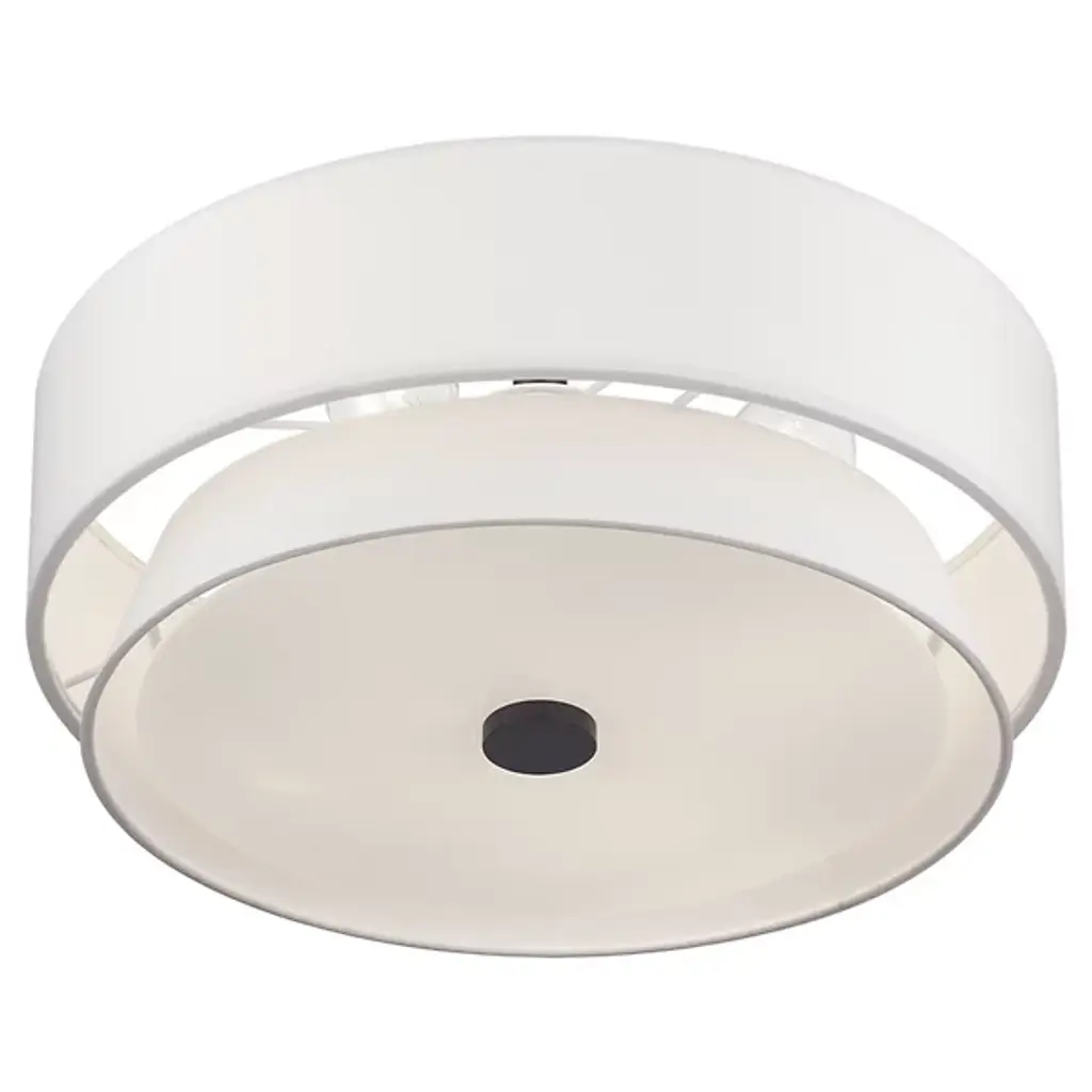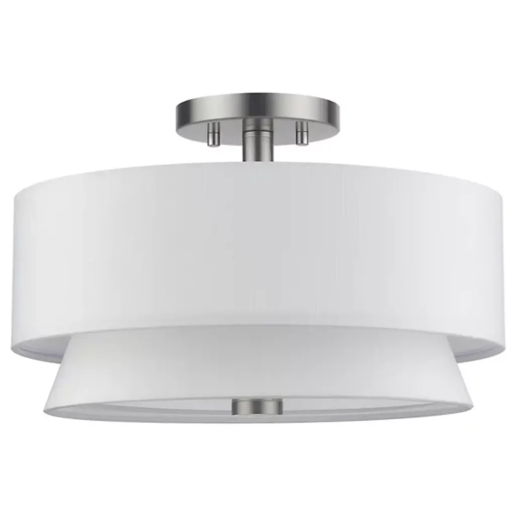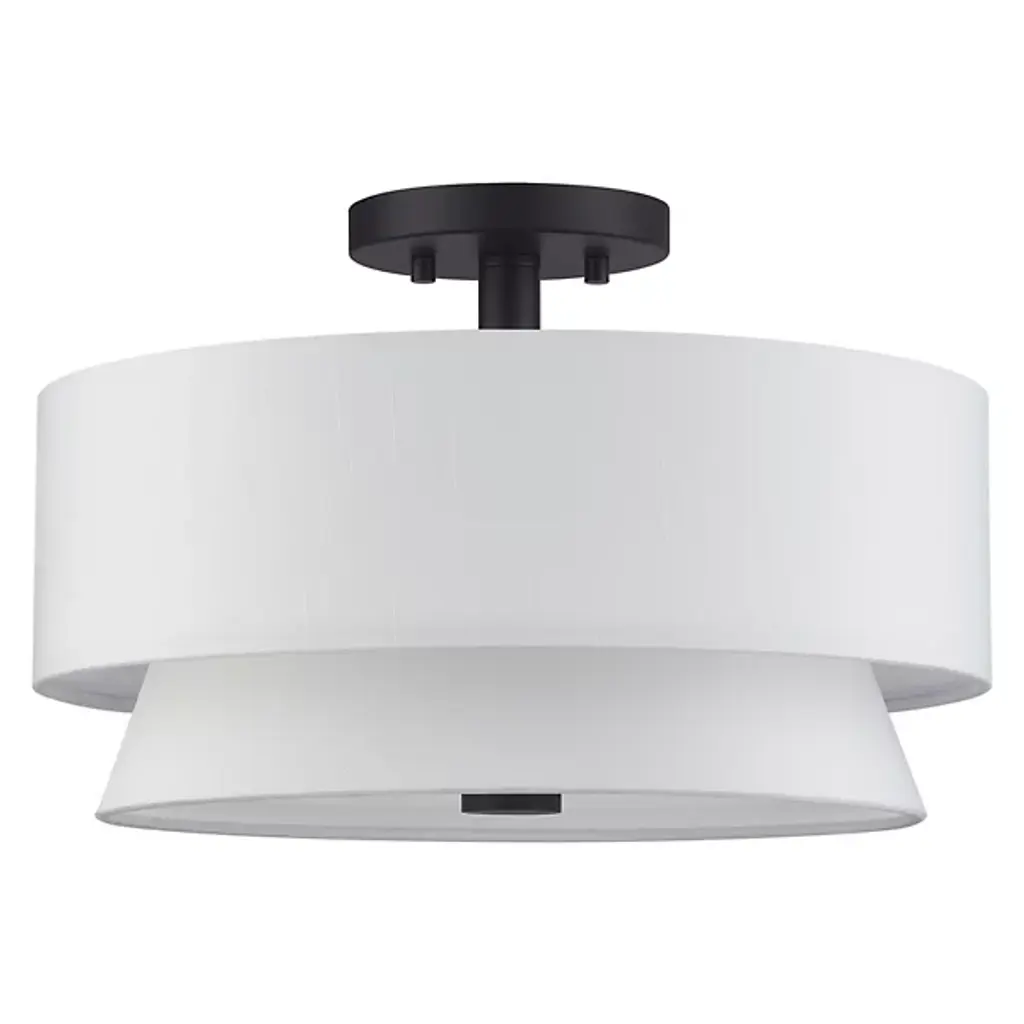 The Eliotte Semi Flushmount from Alder & Ore adds an expressive transitional style with its elegant double drum shade. Its handsome design draws the eye, as this fixture features a handcrafted off-white fabric hardback shade complemented by a satin white acrylic diffuser, offering a soft and subtle illumination. The design is constructed from durable steel and blends classic charm with contemporary elegance, bringing a sophisticated presence that casts a radiant glow.