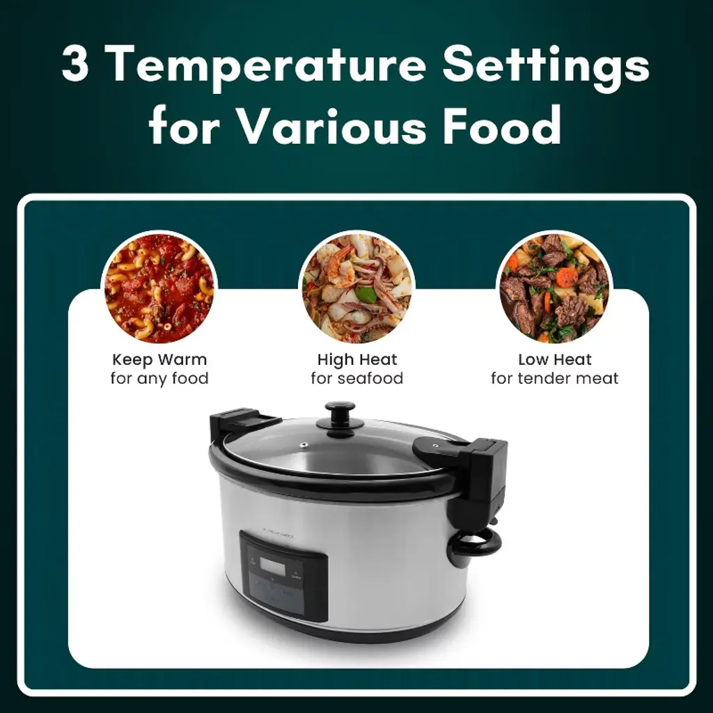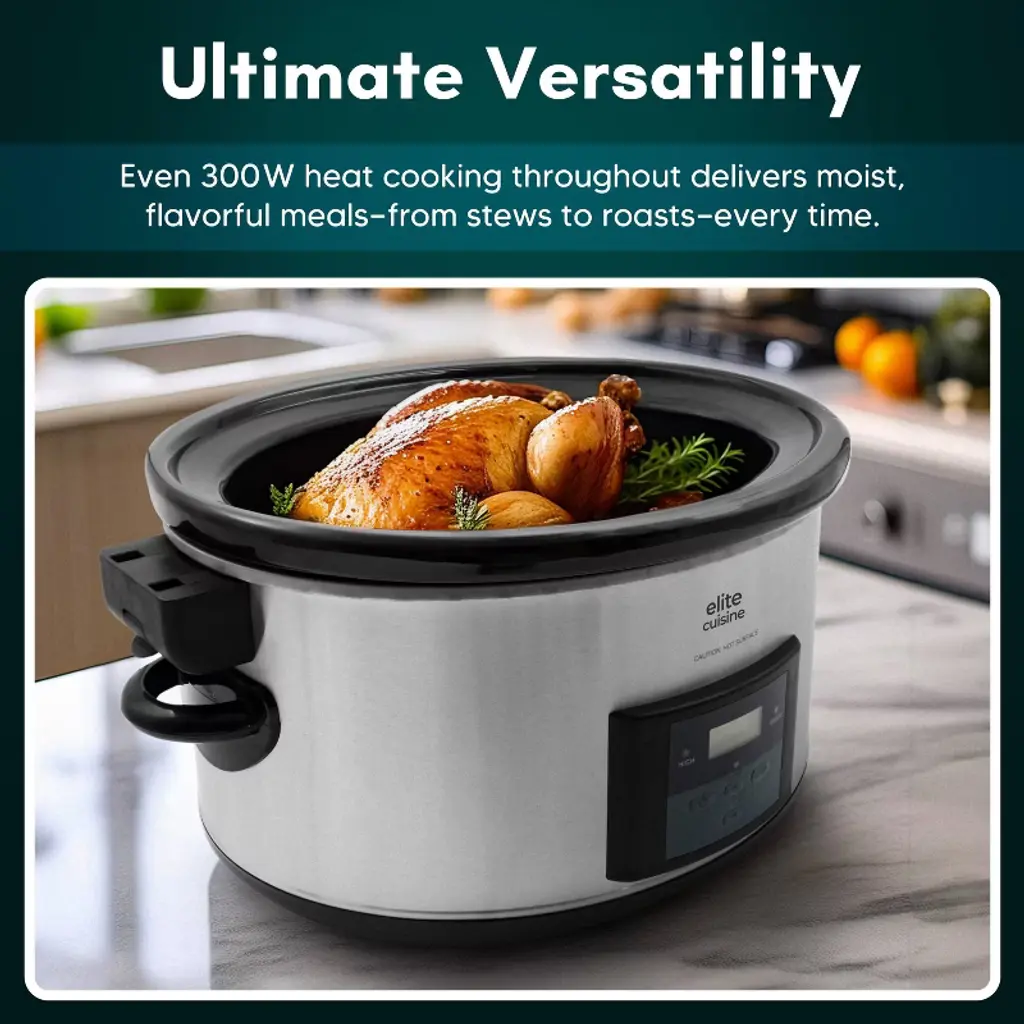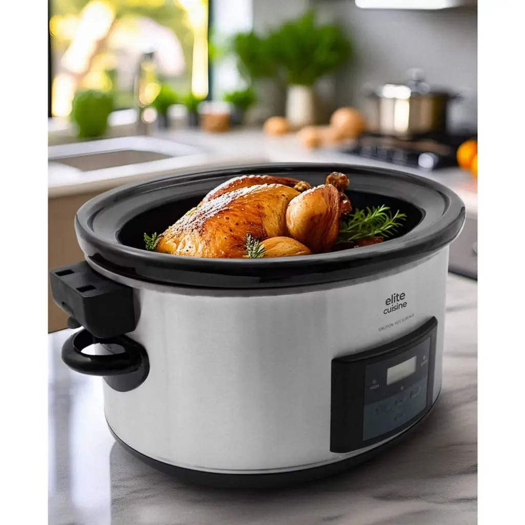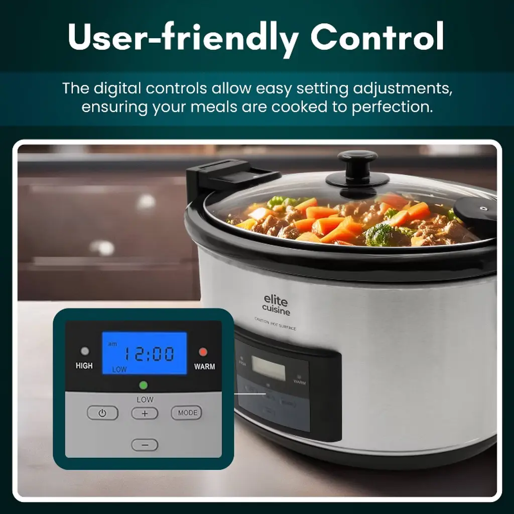 Elite Cuisine 8.5qt Stainless Steel Programmable Slow Cooker With Locking Lid