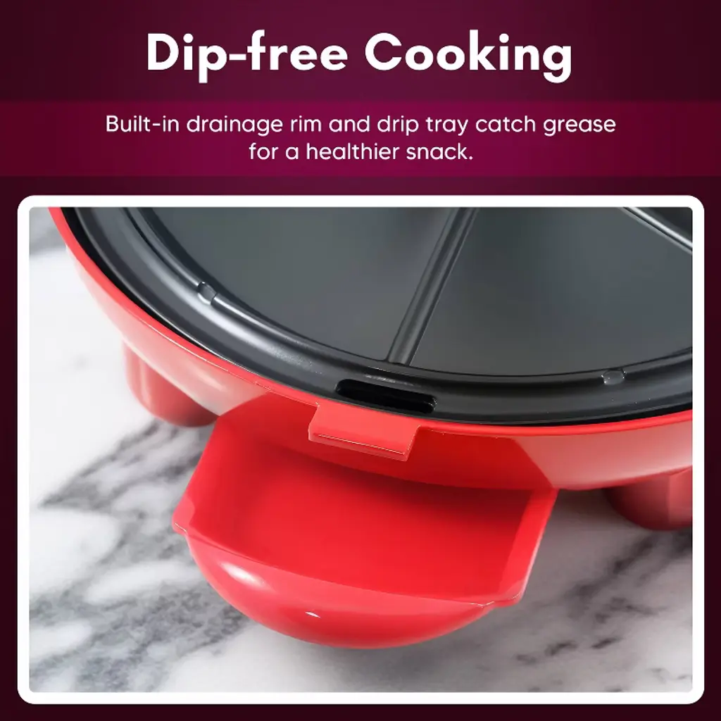 Enjoy tasty and cheesy quesadillas right at home. It makes for a perfect after-school snack! With melted cheese and perfectly partitioned pieces any time, day or night, whenever you are craving the delicious snack. The Elite Cuisine 8” Electric Quesadilla Maker is so easy to use. Simply use one or two tortillas, add your favorite ingredients such as meats, vegetables and of course cheese, then turn on the unit and close the lid and in just a few minutes, it’s ready! The uniquely designed non-stick cooking plates quickly heat up and make cooking fast. Equipped with a power and ready indicator lights to let you know when the unit is hot enough for cooking. The specially designed grooves along the rim also has a built-in convenient drainage hole and cup to catch any unwanted grease and oils to reduce unhealthy fats. Besides quesadillas, you can also use the machine to make grilled cheese sandwiches, crepes and even pizza! Clean up is a cinch as well. The nonstick cooking plates simply wipe clean with a damp cloth and the unit can be easily stored away upright in any cabinet.