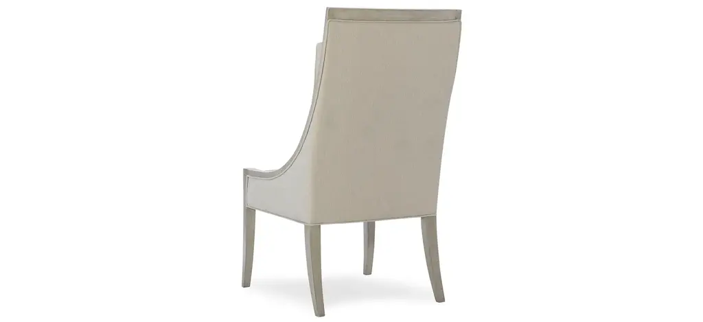 Exuding a feeling of comfort and simplicity, the Elixir Host Chair will help you extend gracious hospitality in your home. With a fabric seat and fully upholstered back in a lovely neutral color, the wood finish is in a serene gray beige applied to lightly sand-blasted walnut veneer for a textured look. A loose-pillow back adds extra comfort, and the splayed front legs add extra flair.