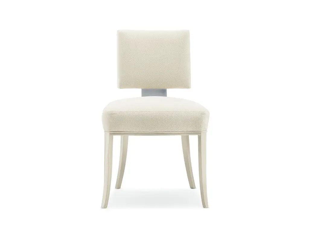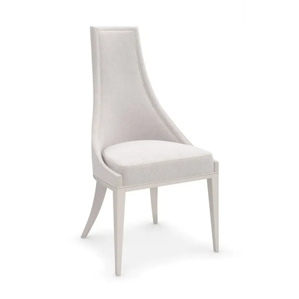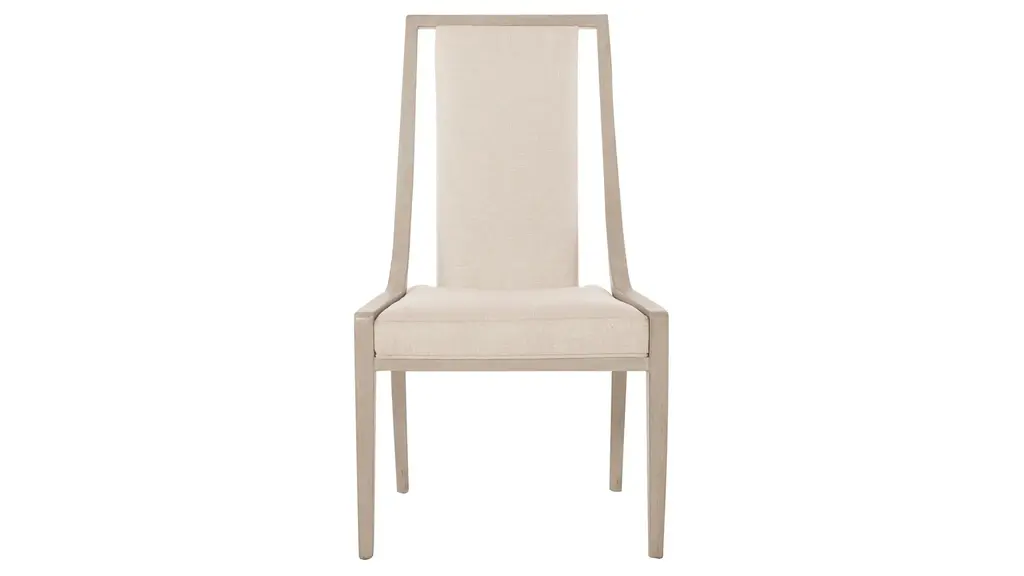 Exuding a feeling of comfort and simplicity, the Elixir Upholstered Side Chair will help you extend gracious hospitality in your home. With a fabric seat and back in a lovely neutral color, the wood finish is in a serene gray beige applied to lightly sand-blasted walnut veneer for a textured look. The splayed front legs add extra flair.