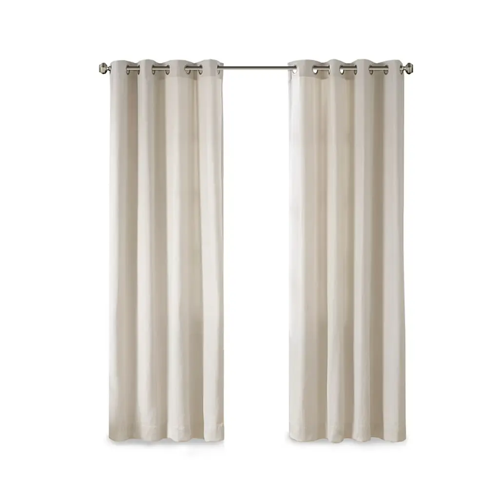A sleek window treatment can easily bring a fresh update to your living room decor. The Elizabeth Grommet Top Linen Drape is an airy piece that not only brings a classic look to your decor but also keep heat in and light out. These lined drapes feature silver-colored metal grommets for looping around your curtain rod. With a variety of colors and sizes, these drapes are perfect for virtually any room in the house! Please refer to the last image to see the color for this option.Purchase is for one drape panel.