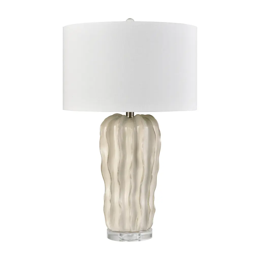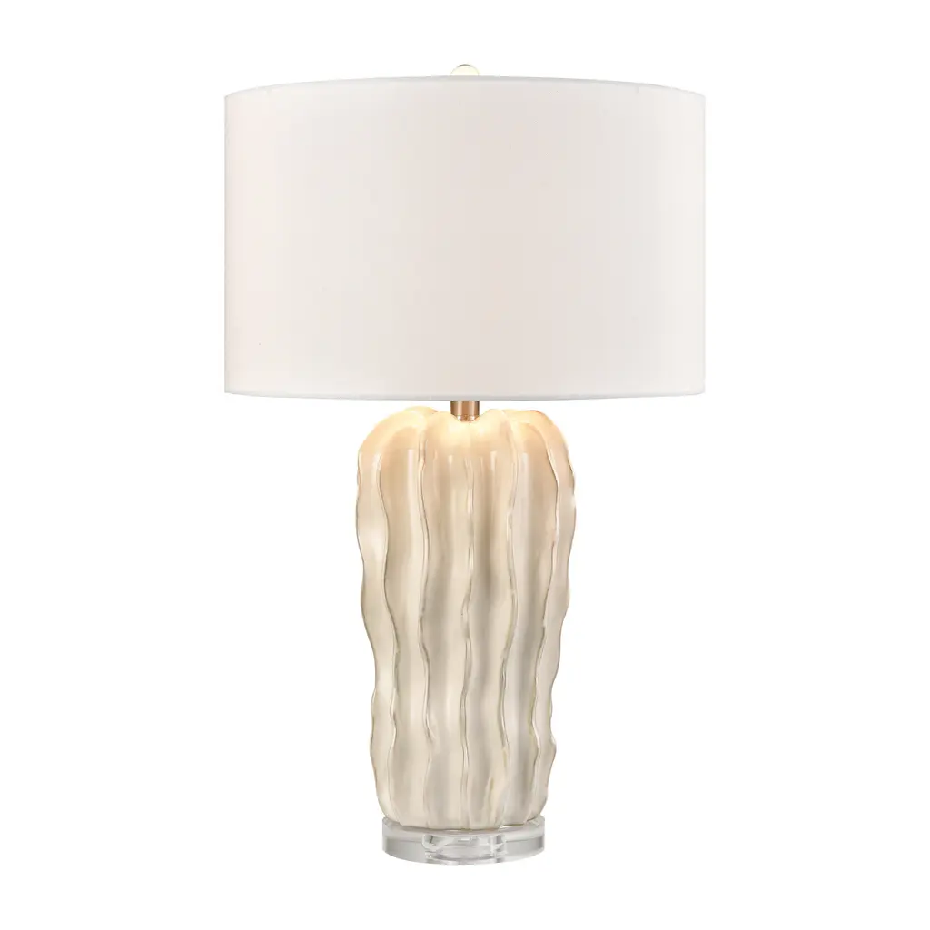 Elk Home Genesee White Glazed With White Linen Drum Shade Table Lamp - White Glazed