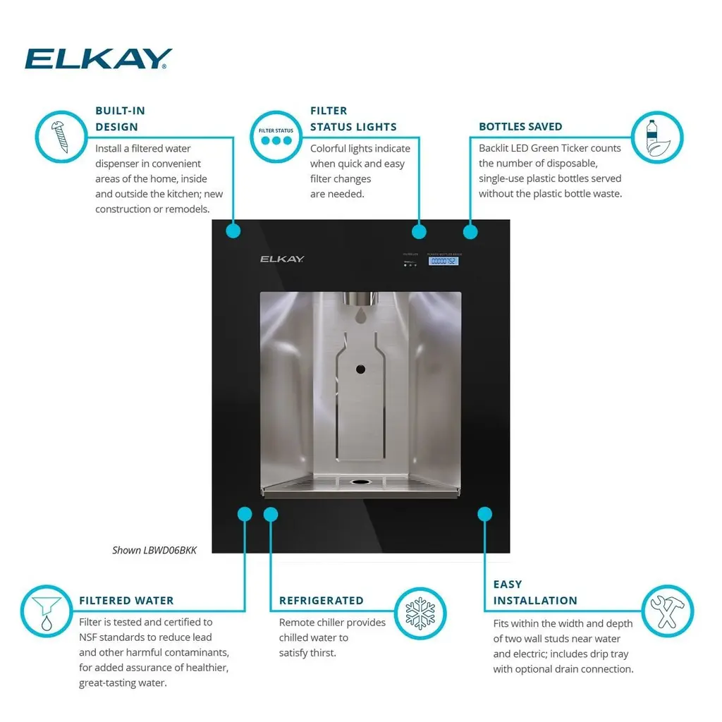 Elkay Ezh2o Liv Built-In Filtered Refrigerated Water Dispenser Remote Chiller - Midnight