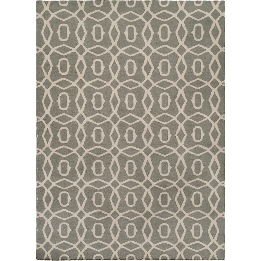 Collection: Ella Colors: Gray, Ivory Construction: Hand Tufted Material: Face: 100%Wool / Warp: Cotton Pile: Low Pile Pile Height: 0.39" Styles: Transitional,Bohemian,Casual Backing: Cotton Made In: India Thickness: 0.39" Price Range: $$$$$ (Most Affordable)