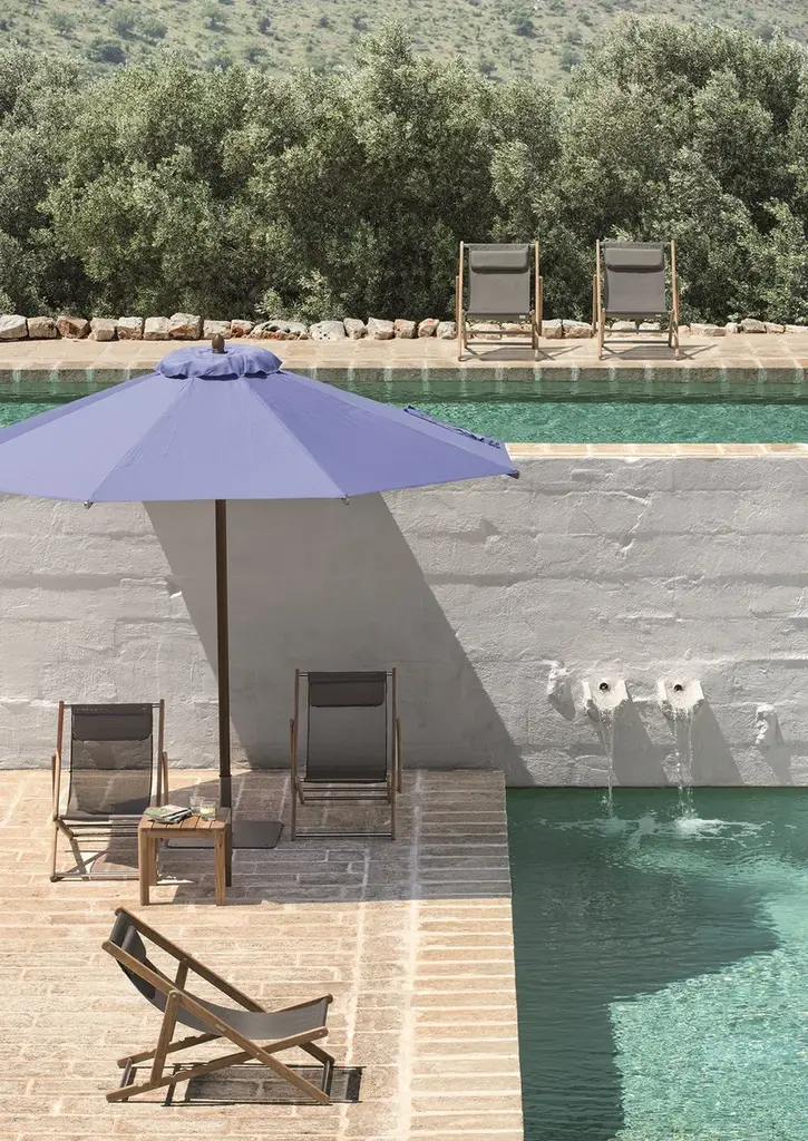 Traditional identity with a contemporary style, the Elle deckchair is a versatile piece of furniture, suitable for every location and available in different fabrics and colours. Folding deck chair with acrylic or Ethitex fabric cover in different colours.
