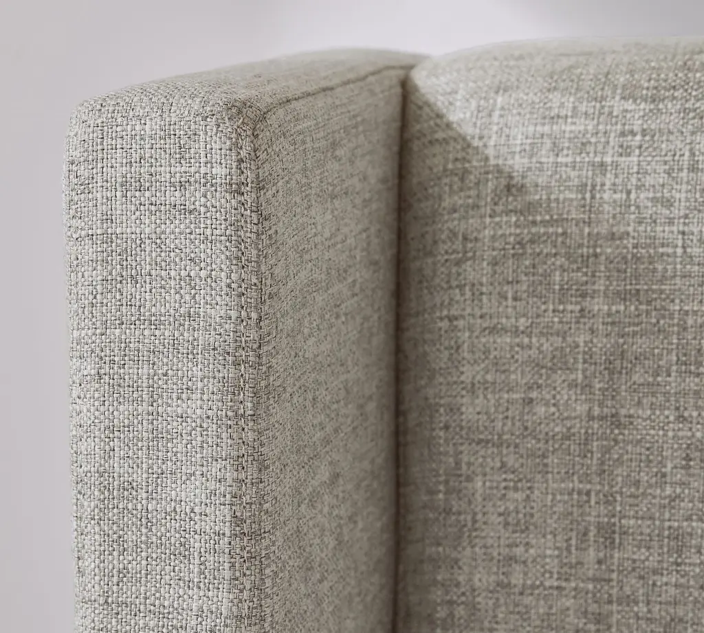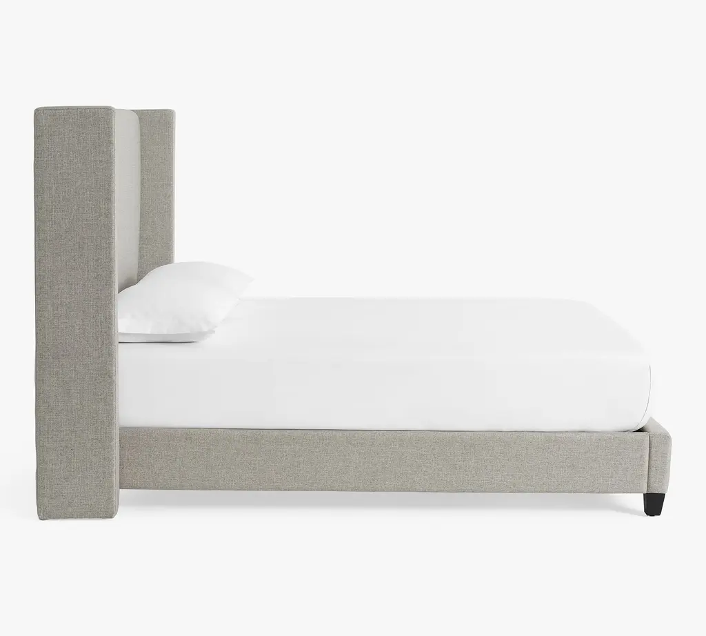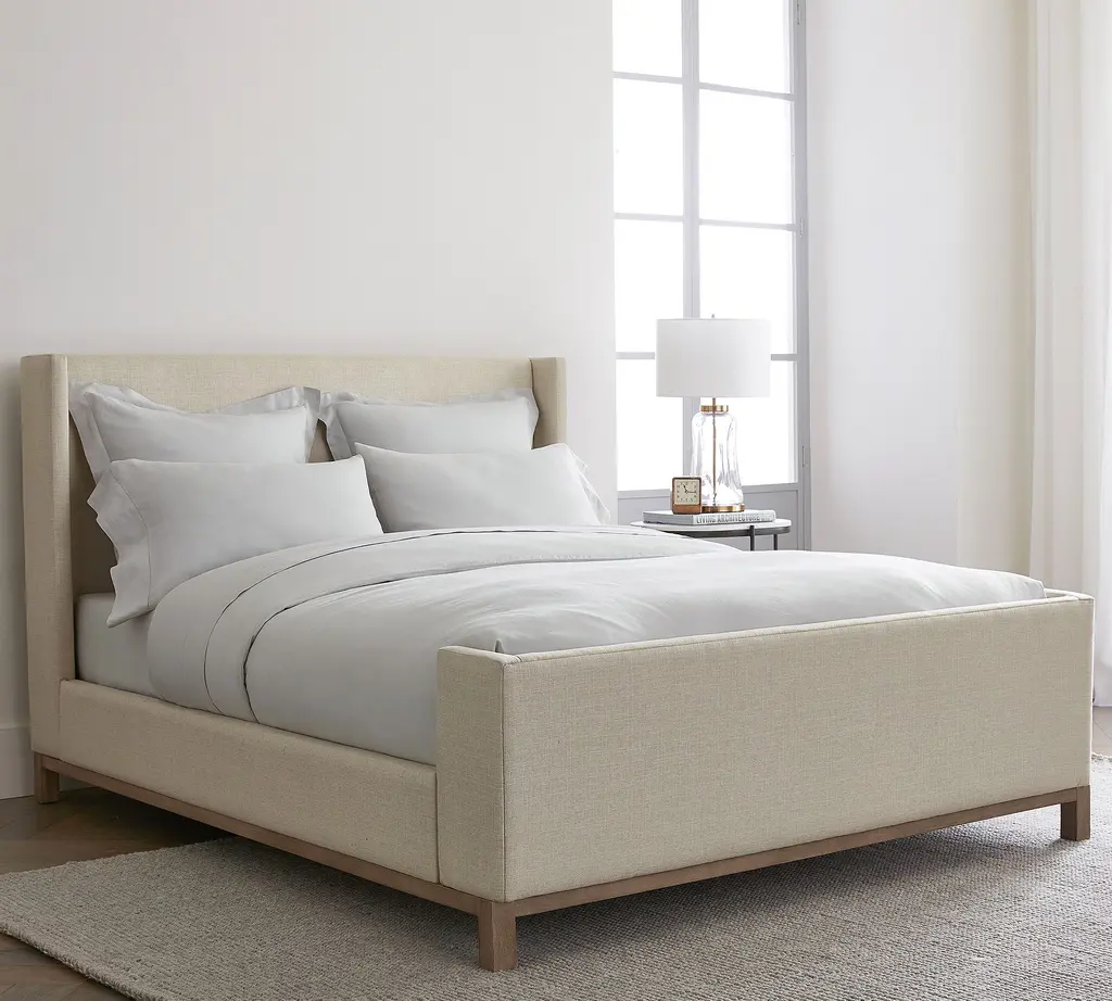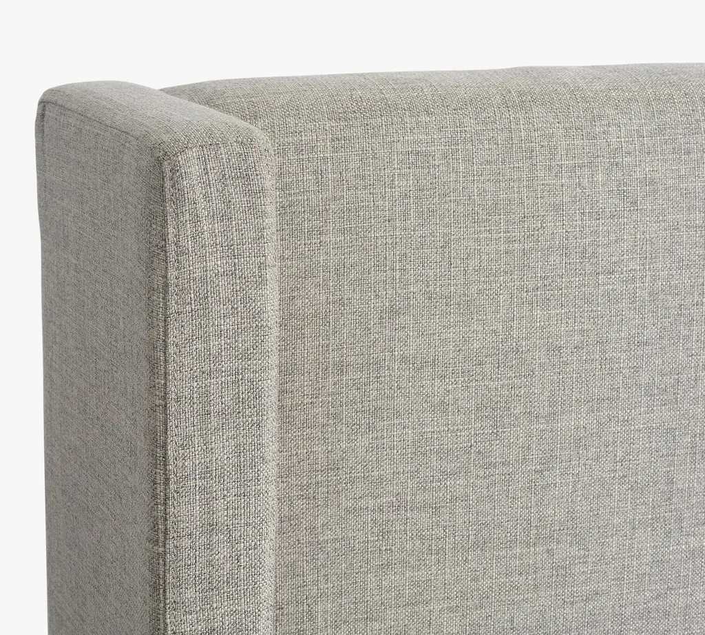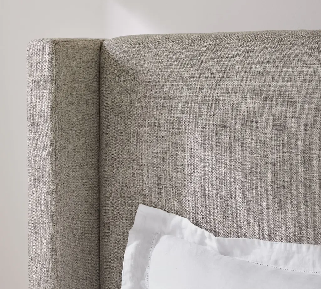 A cozy shelter profile on the headboard gives this bed a simple yet elegant presence. Upholstered in fabric, it can soften and warm the look of your bedroom.