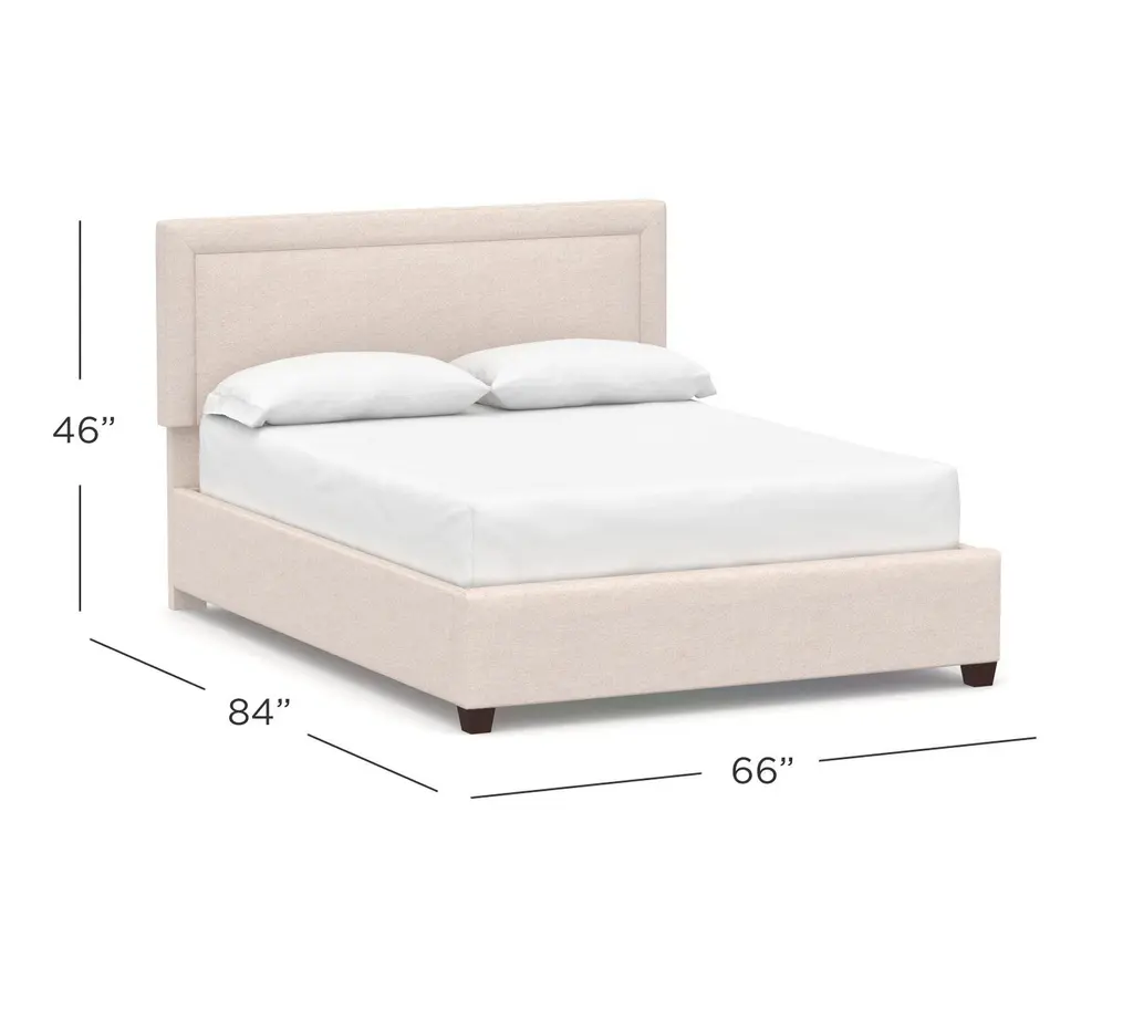 A more contemporary square profile gives this Elliot Upholstered Bed a simple yet elegant presence. Available in a choice of fabrics, it’s ideal for customizing the look of your bedroom.