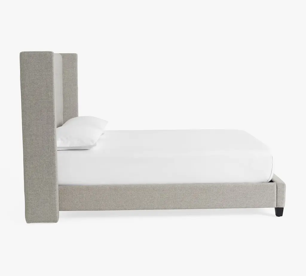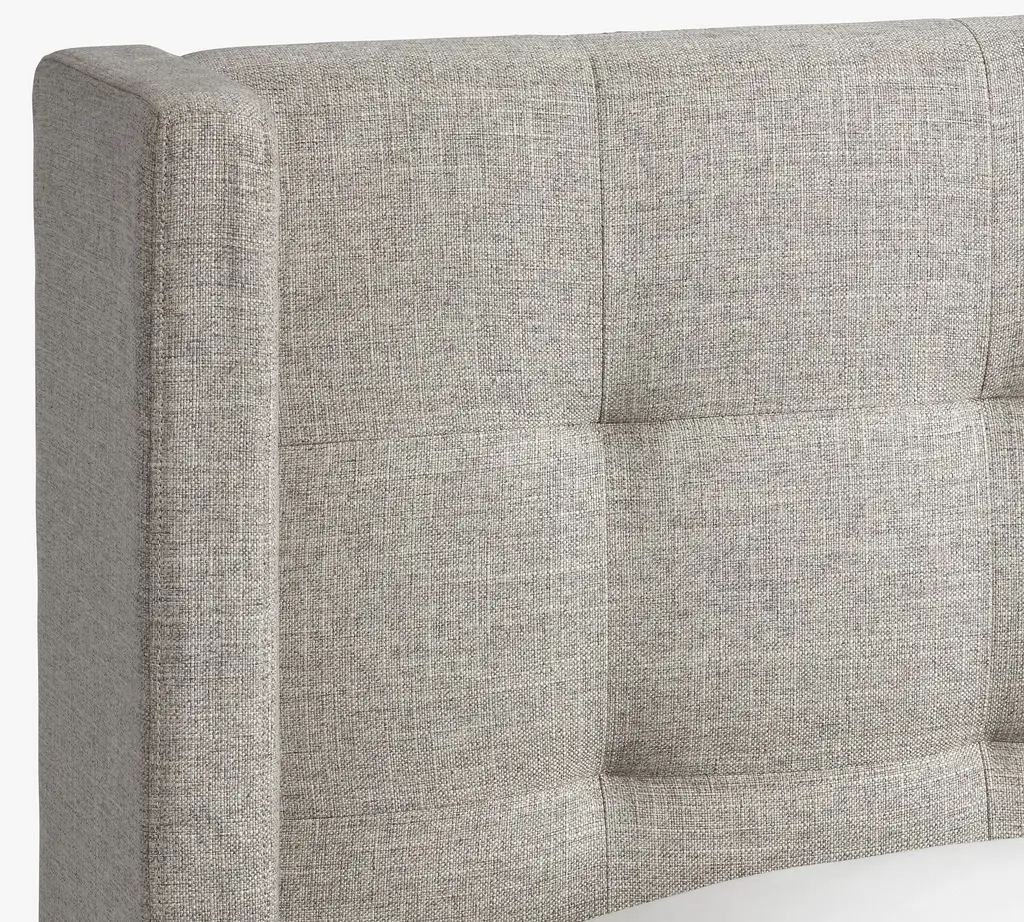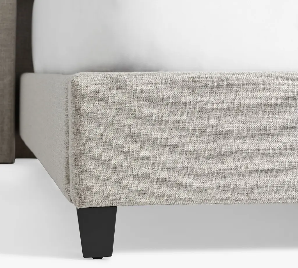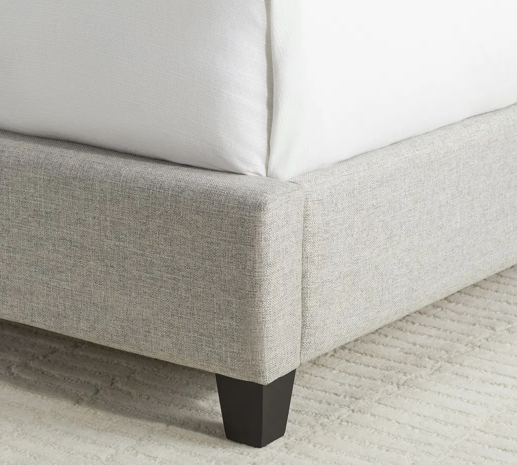 A cozy shelter profile on the headboard gives this bed a simple yet elegant presence. Upholstered in fabric, it can soften and warm the look of your bedroom.