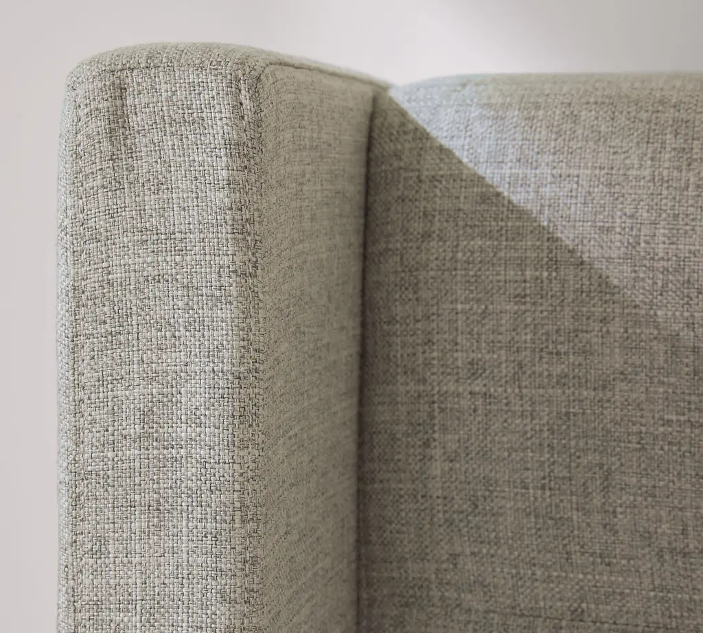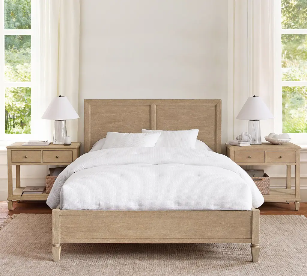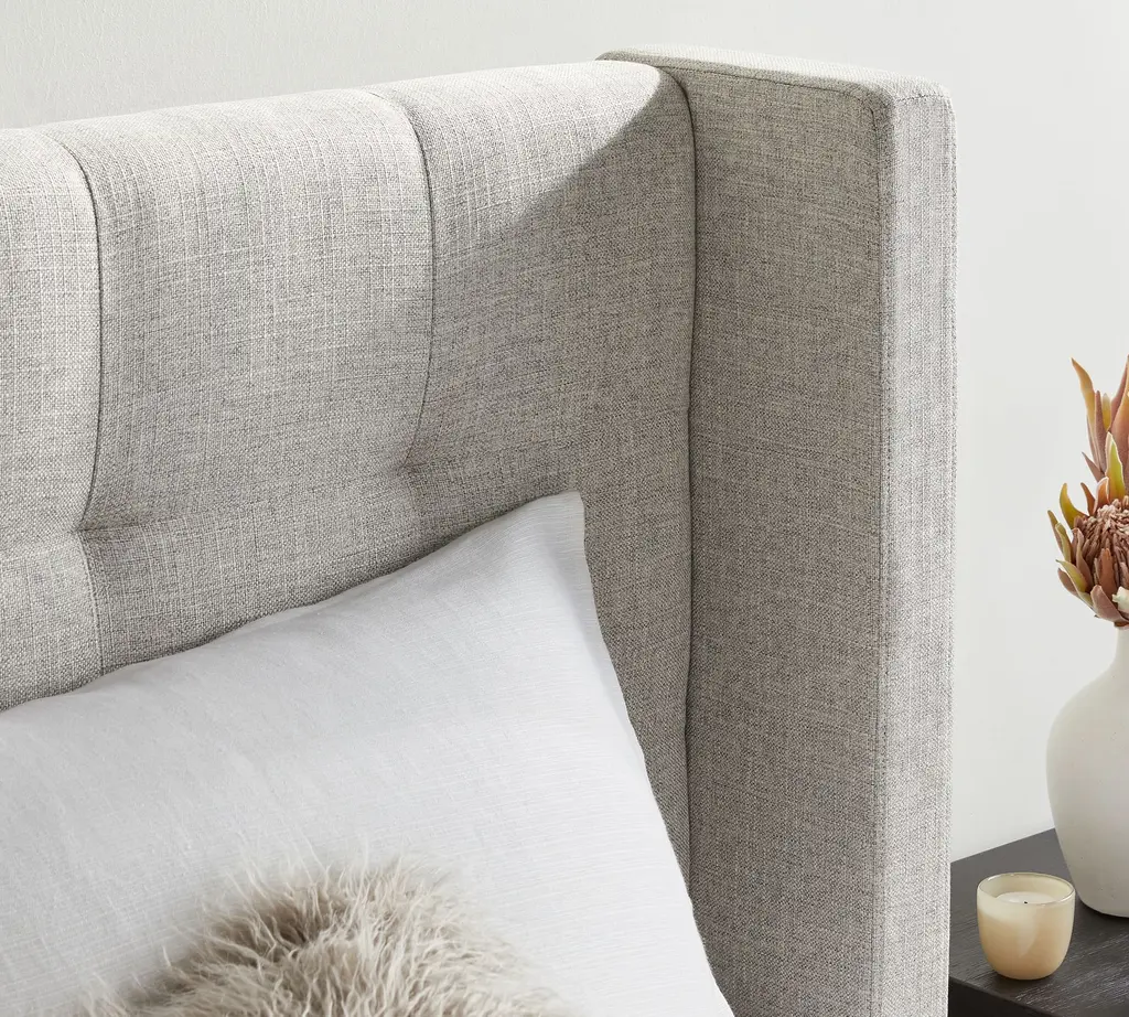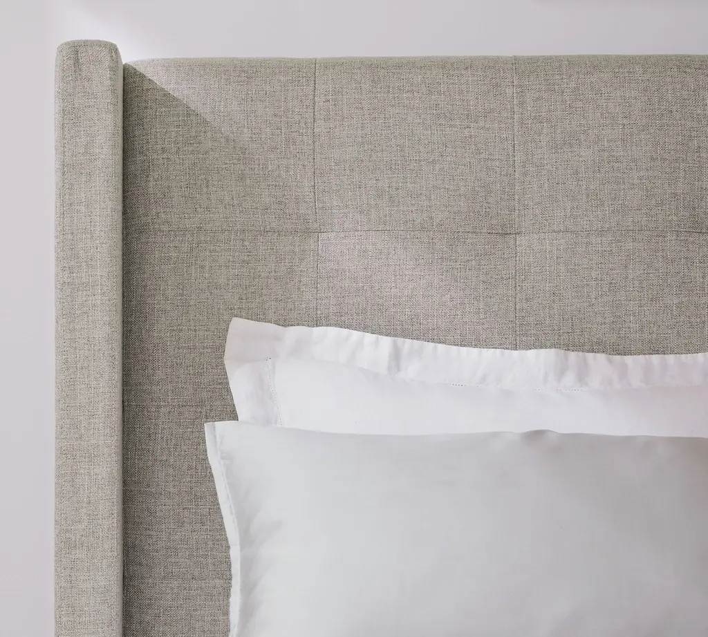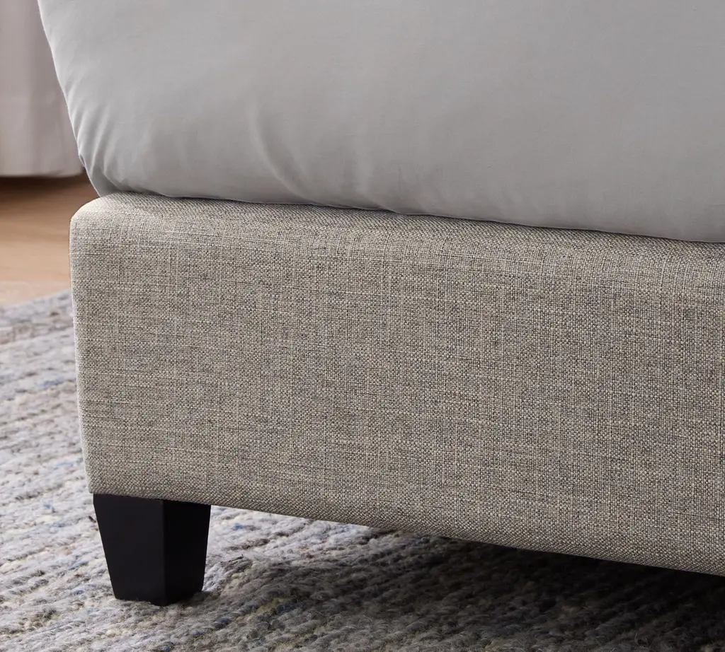 A cozy shelter profile on the headboard gives this bed a simple yet elegant presence. Upholstered in fabric, it can soften and warm the look of your bedroom.